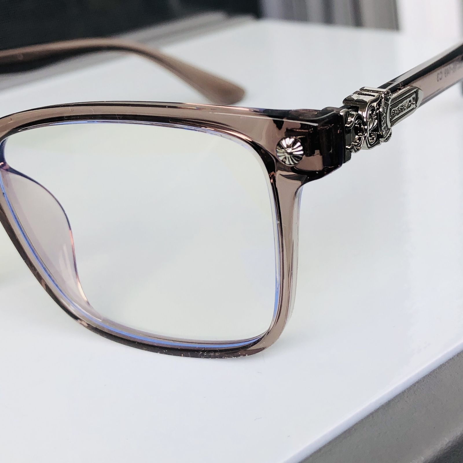 We distinguish ourselves from other similar design available in the market with QUALITY being our top priority. All of our eyewear are EXCLUSIVELY made with genuine chrome internal structure adorned with chrome-mixed jewelries, will not tarnish. Structure designed in Japan.