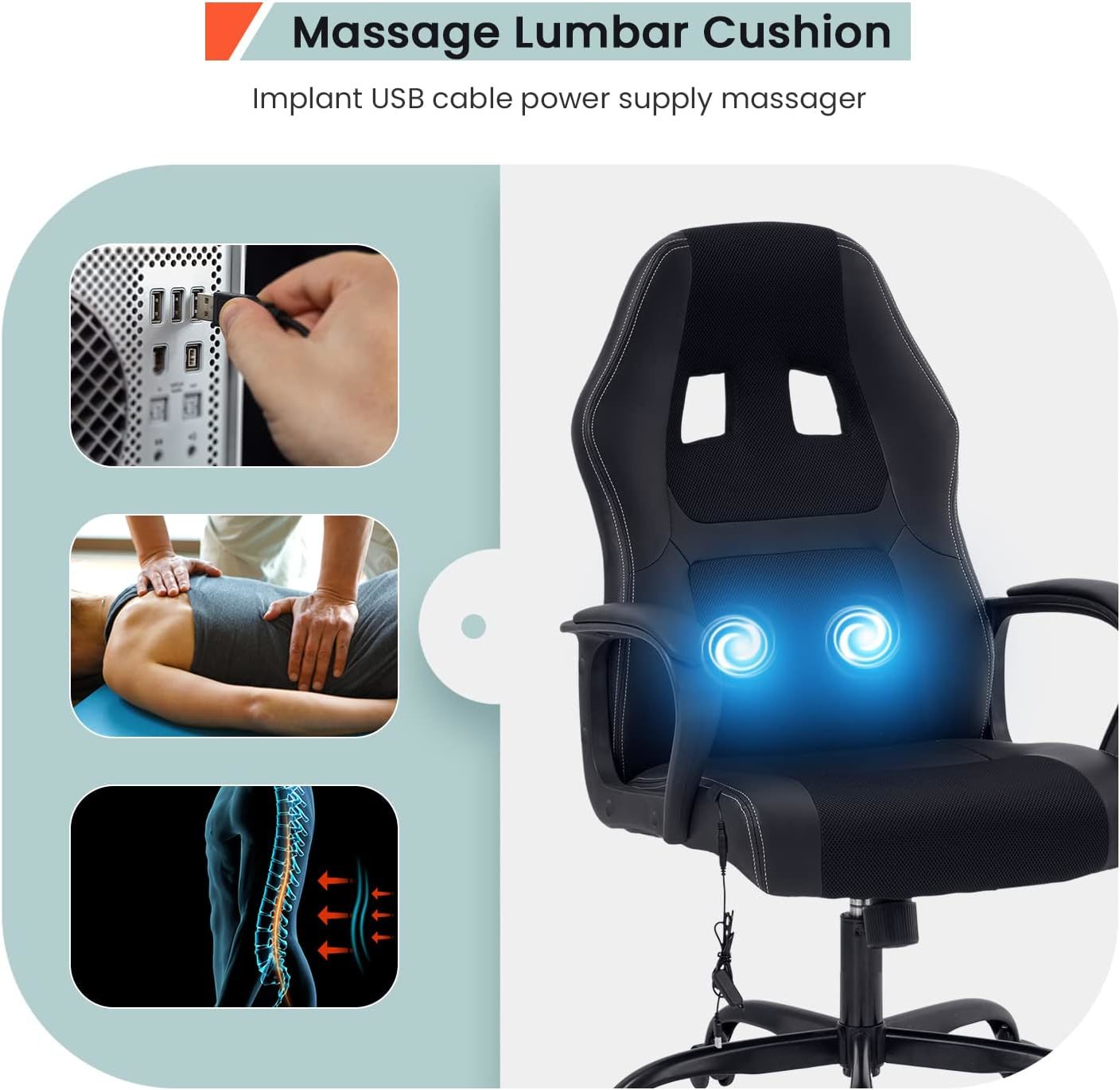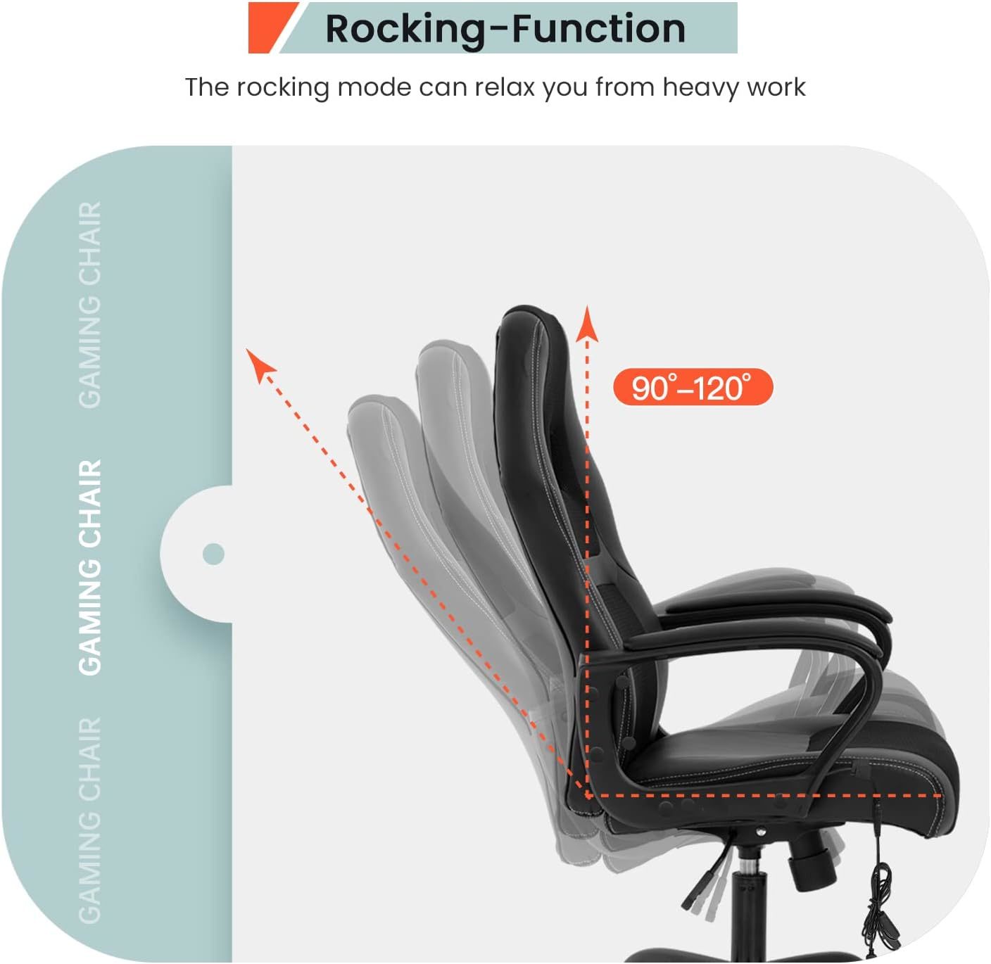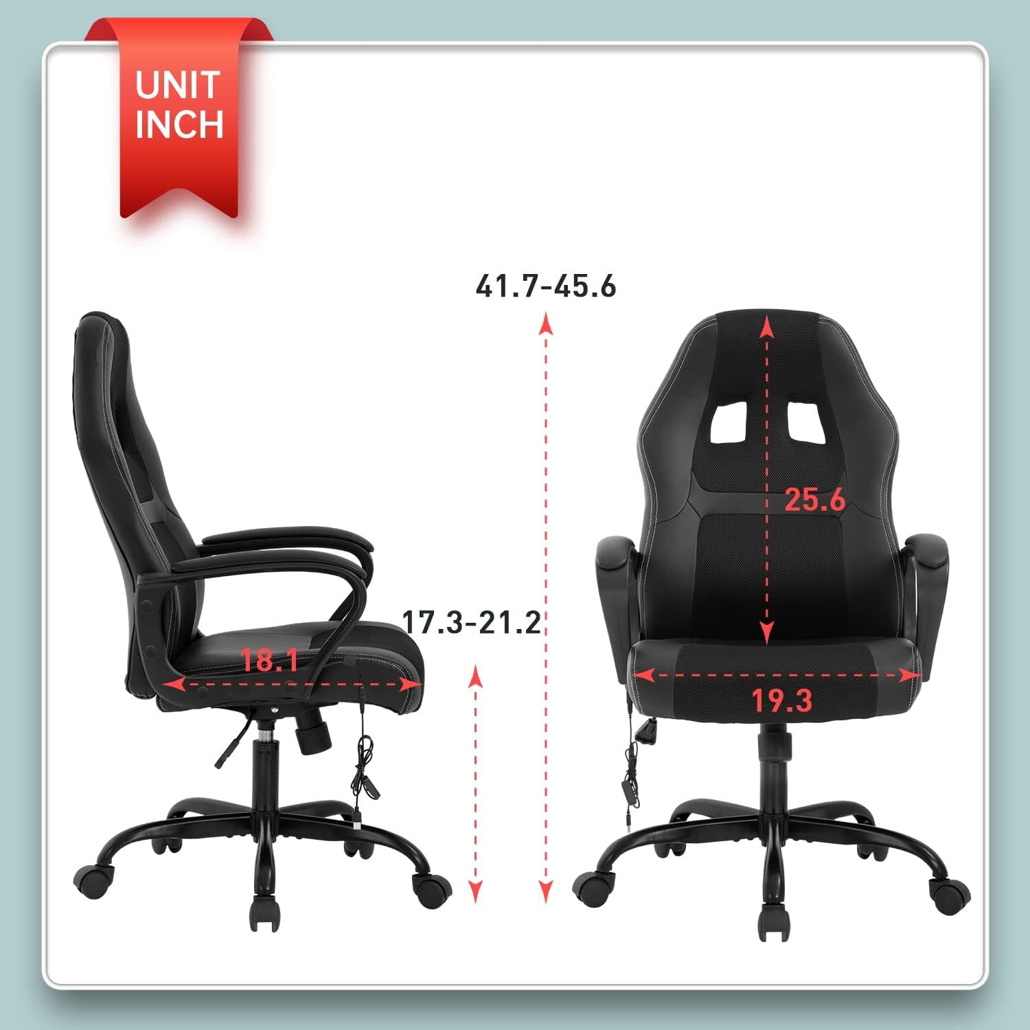 ?Easy to Set Up- Follow the gaming chair instruction, and you will find it easy to install. It will took maybe 10-15minutes to assemble the office chair, which supports up to 250 pounds. ?Ergonomic Design- Our office chairs with human-oriented ergonomic construction that lasts long, with ergonomic construction, and BIFMA-approved heavy-duty metal base, sitting on nylon smooth-rolling casters that swivel 360 for maximum mobility. ?Massage Office Chair-Our computer chair have a vibrator with remote control in the lumbar support, slight vibration can reduce the fatigue caused by your long hours of work. so that you won't feel tired even after a long period of work. ?Good Material - Computer chair is made from soft PU leather upholstery and ample padding that is oil, and water resistant, it?s also makes the chair very easy to clean. ?Applicable Places - This desk chair is suitable for the office, gaming room, living room, bedroom, the study and so on. It will make your space more modern and elegant.