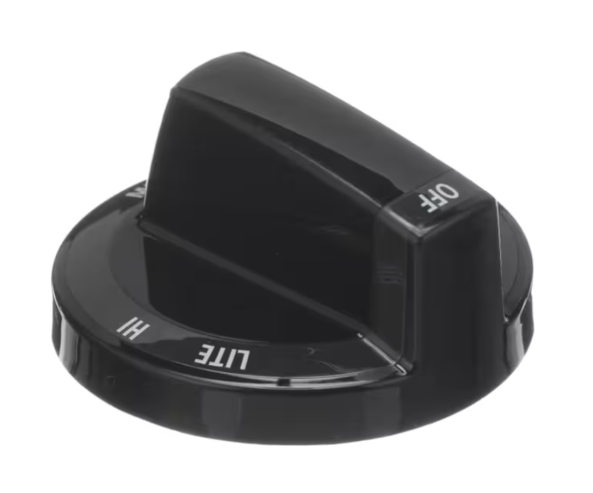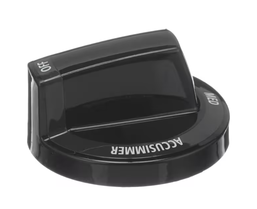 Whirlpool KI 6U77, 7733P526-60 Knob, Top Burner, Accusimmer-Med-Hi-Lite, Black