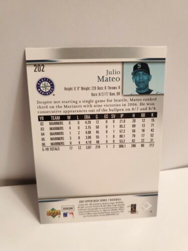2007 Upper Deck Series 1 Baseball Card | Julio Mateo, Seattle Mariners | #202