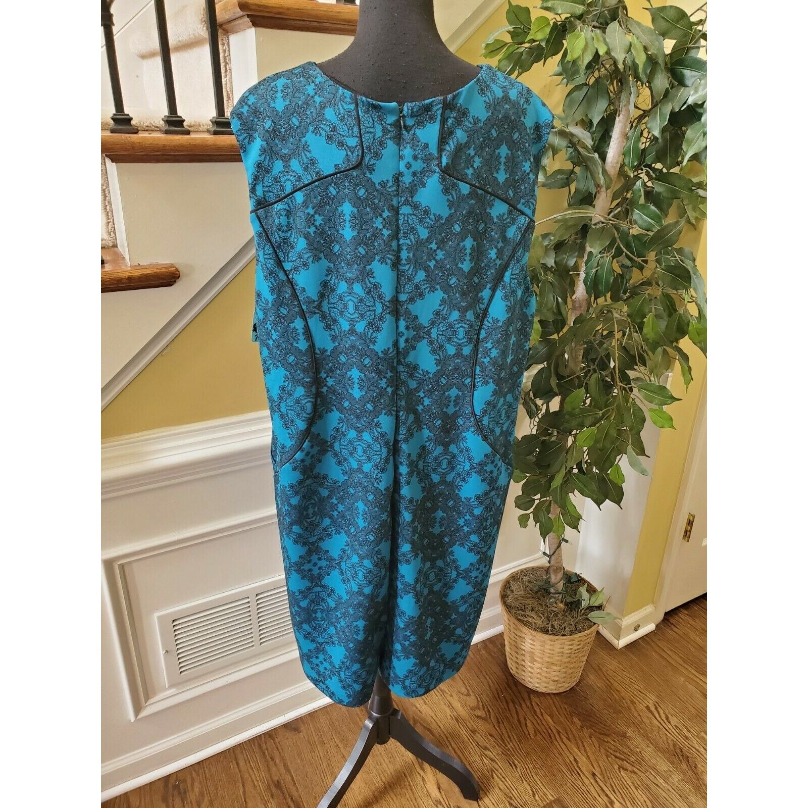 Womans Black Blue Floral STRETCH Fit Flare Dress Size 3X