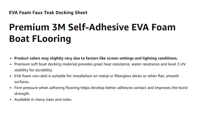 Transform your boat?s deck with this premium gray and white EVA foam flooring roll by OCEANBROAD. Designed for durability and performance in marine environments, it adds a sleek teak-style look while delivering unmatched comfort and grip underfoot.