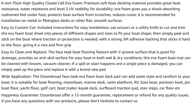 ? Marine-Grade EVA Foam ? 6mm thick, non-toxic, waterproof UV-resistant