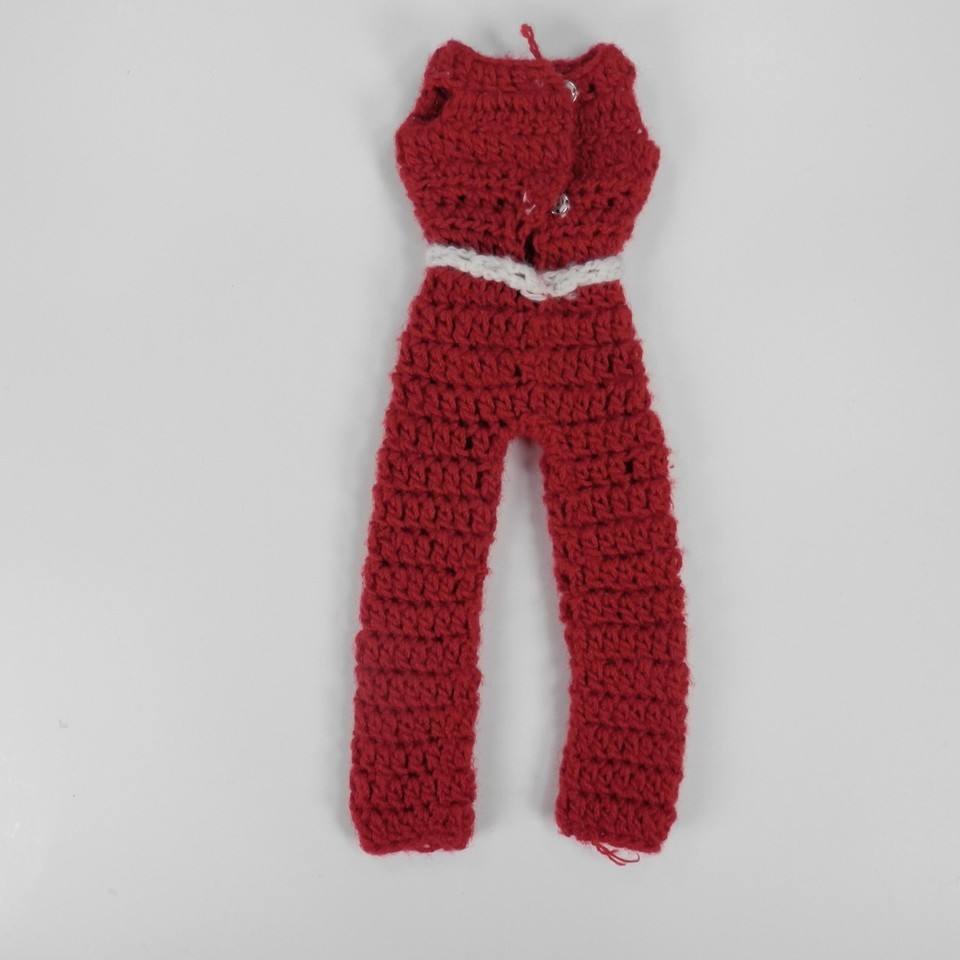 Vtg Handmade Barbie Crochet Knit Red Sleeveless Jumpsuit Pant Outfit Suit