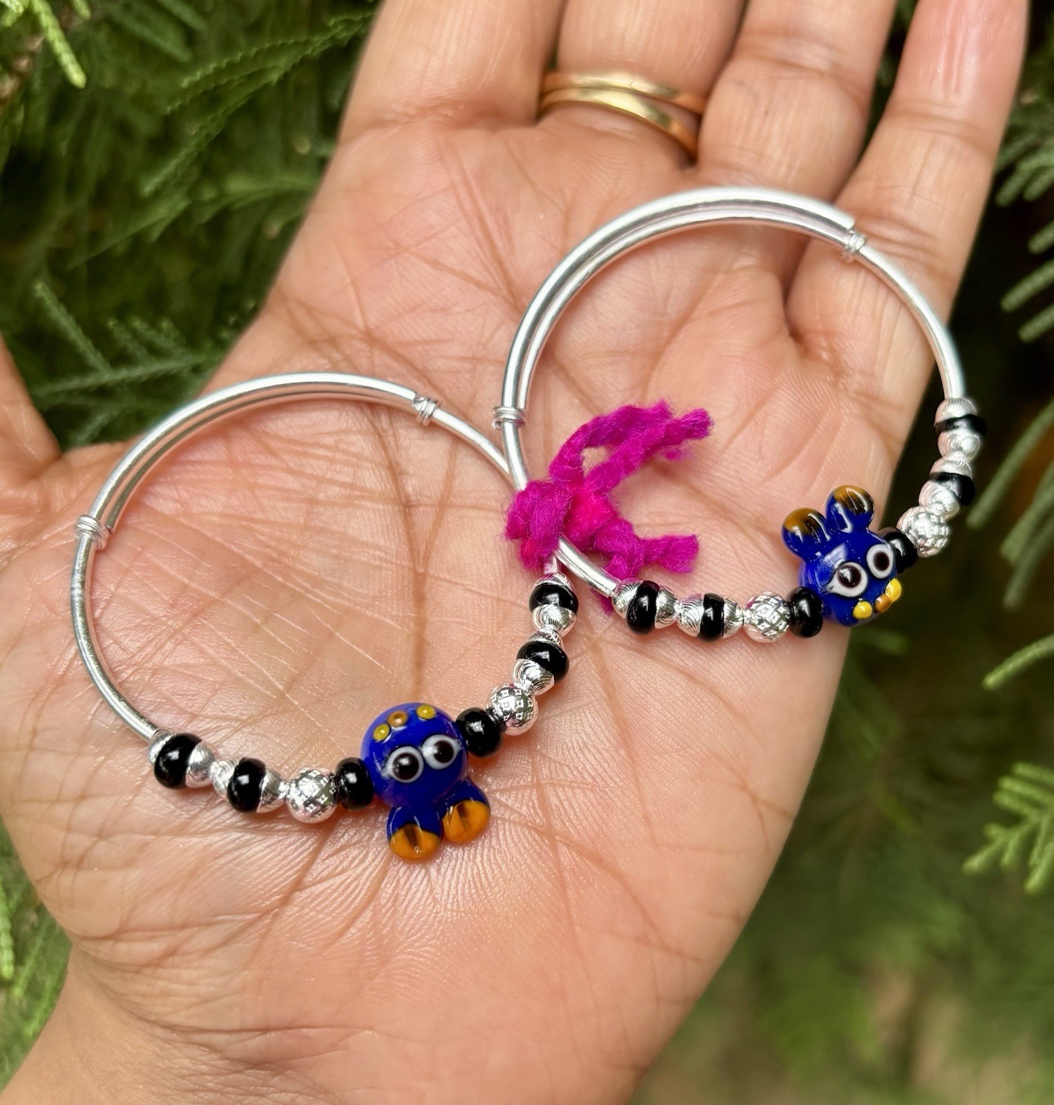 2 Pc 999 Silver Evil Eye Protection Bangle Nazariya Kids Infants 9.7 gm Adjust