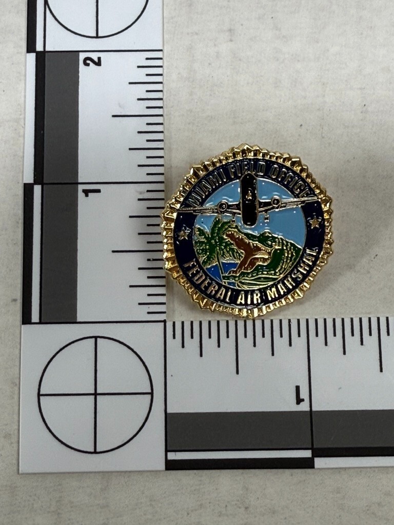 US Federal Air Marshal Airplane Miami Field Office Lapel Pin Police from a pet and smoke free home This pin meets's regulations. This pin is obsolete and is strictly for collecting. This pin has no authority.