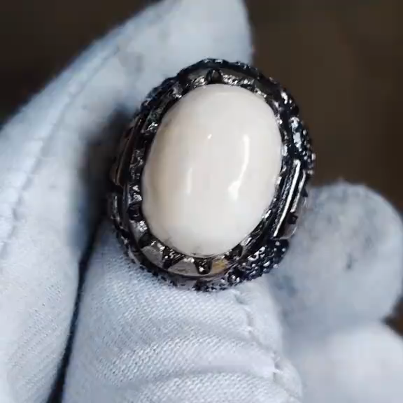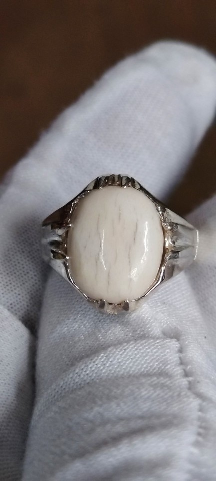 Genuine White Muntjac Deer Antler Silver Goat Nails Ring