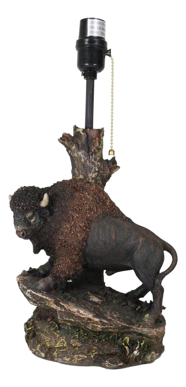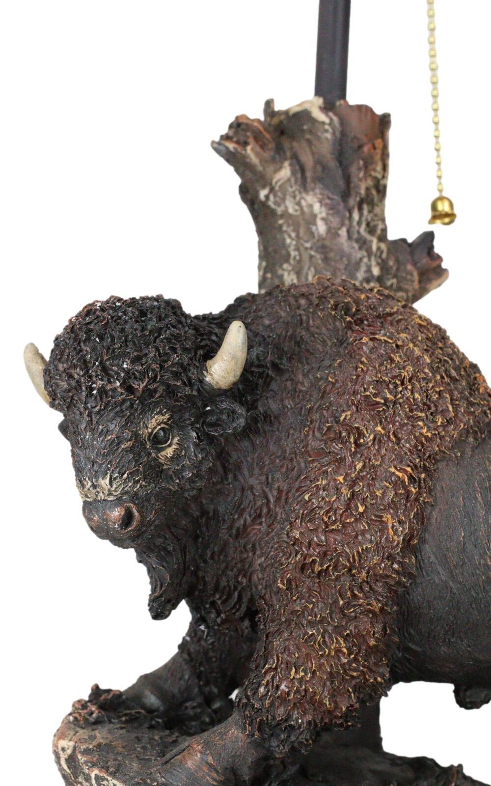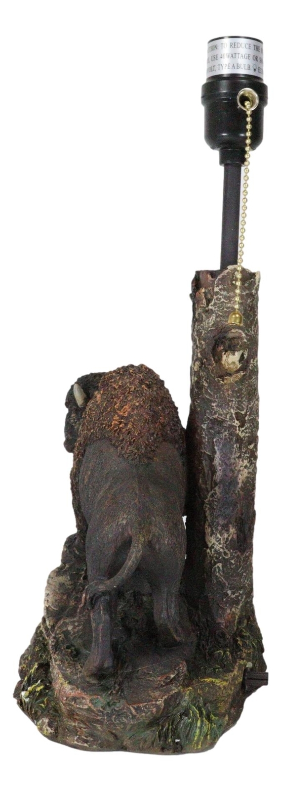 Ebros Western Plains Bison Buffalo On Sloped Rocks By Tree Stump Desktop Table Lamp