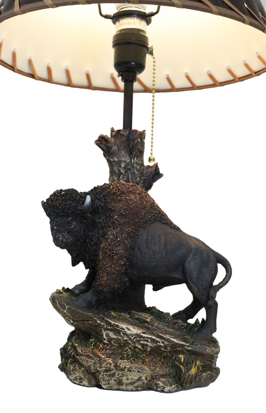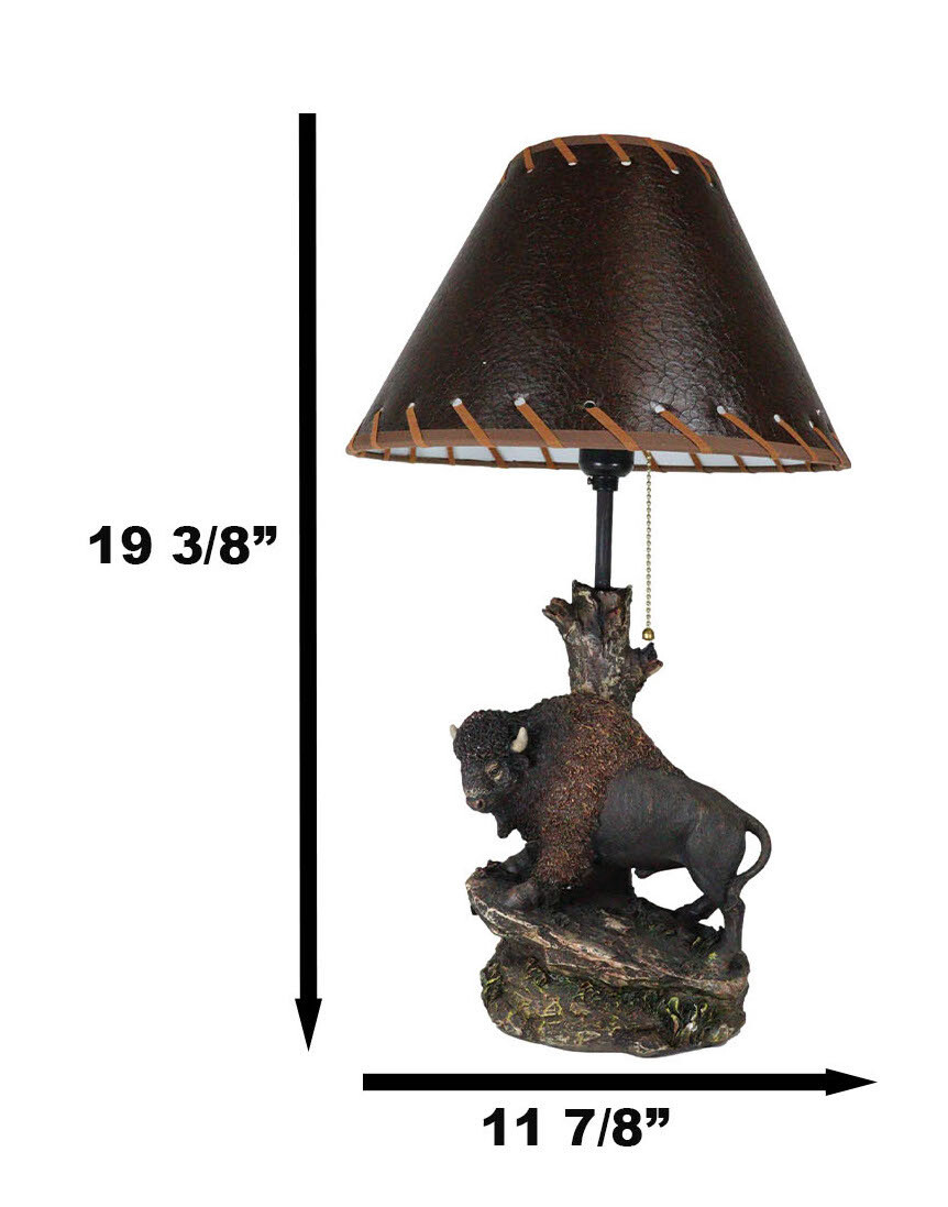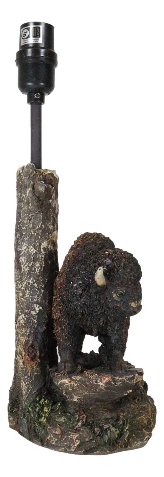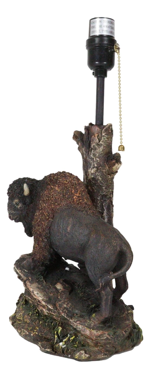Ebros Western Plains Bison Buffalo On Sloped Rocks By Tree Stump Desktop Table Lamp