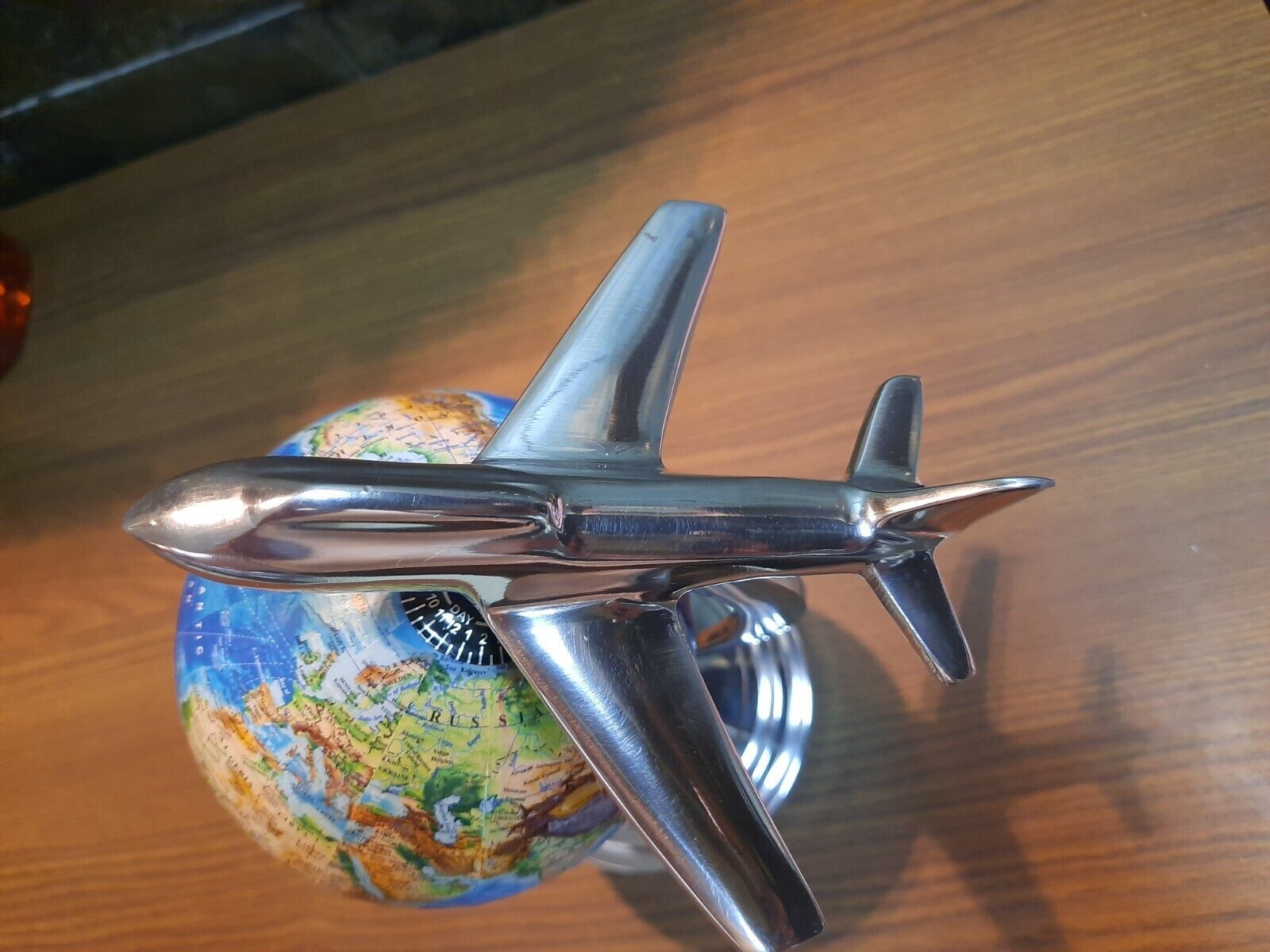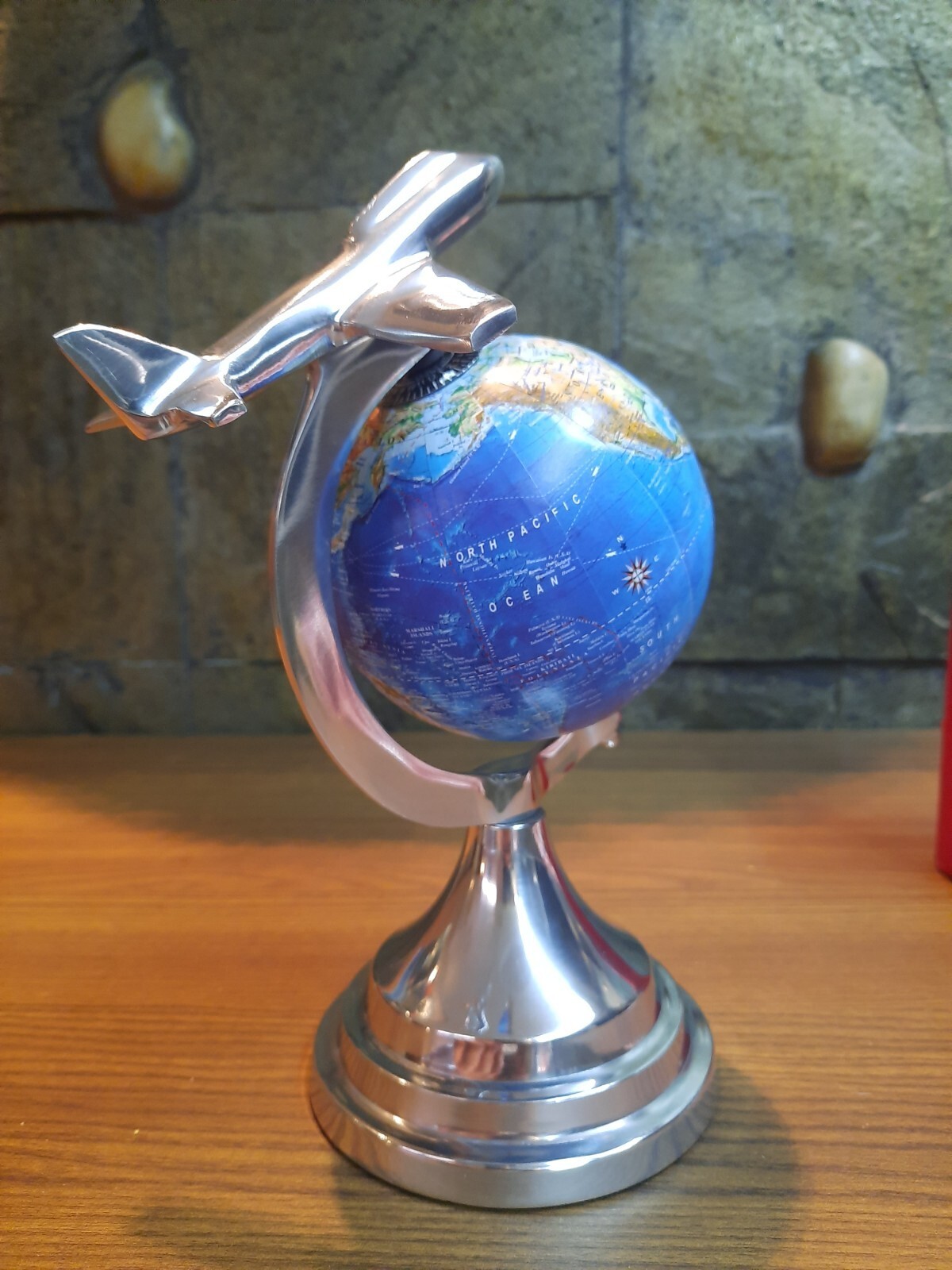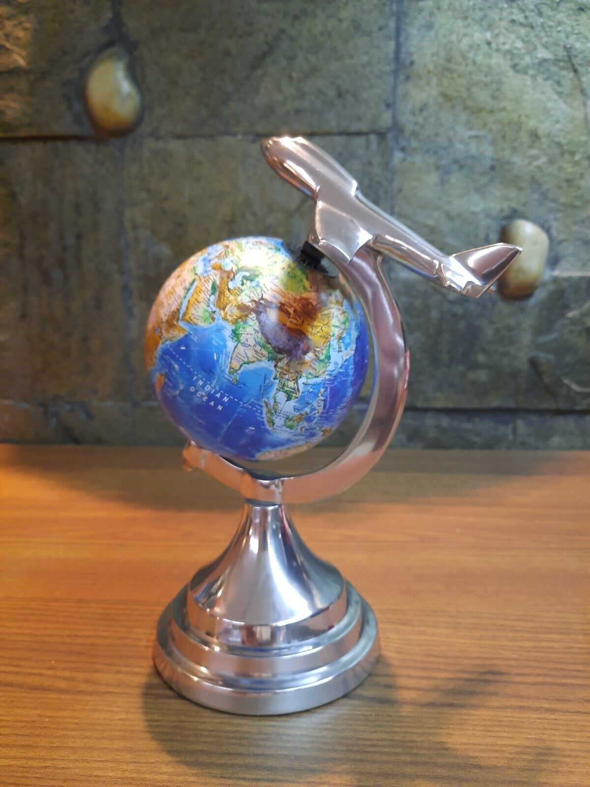 Metal Vintage Silver Sky Blue Aeroplane Globe School Political Home Decor World