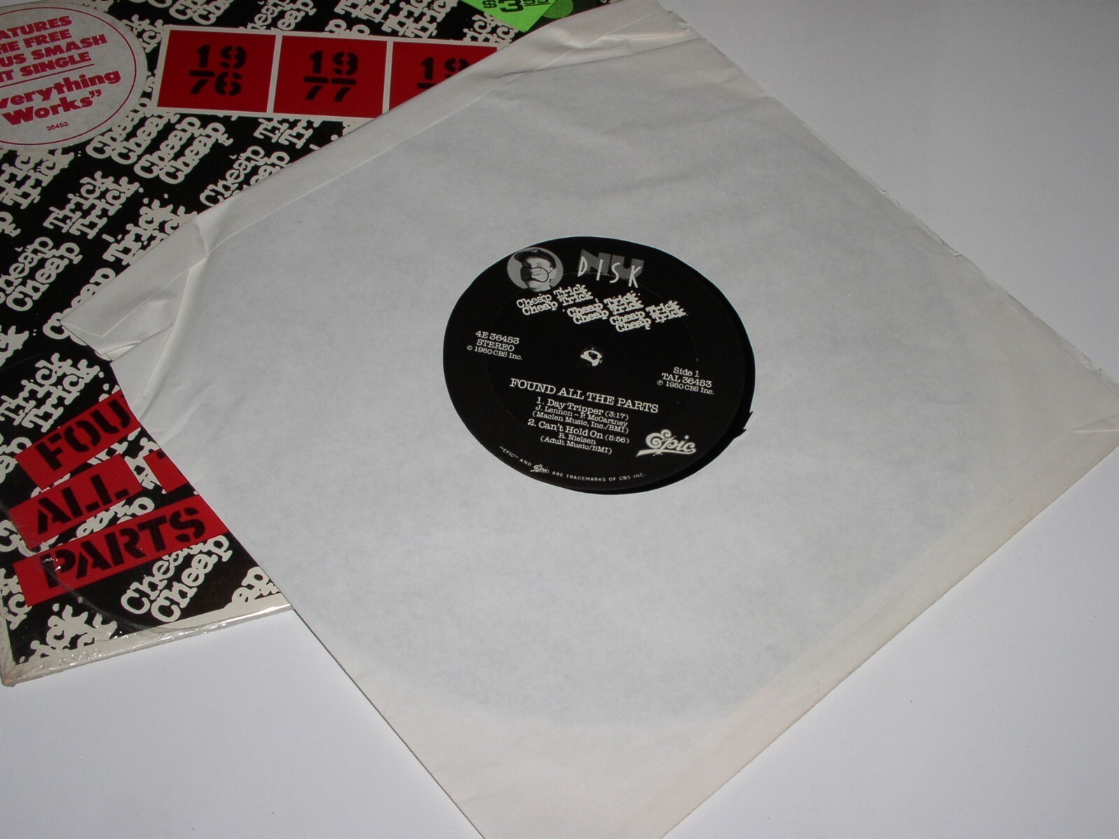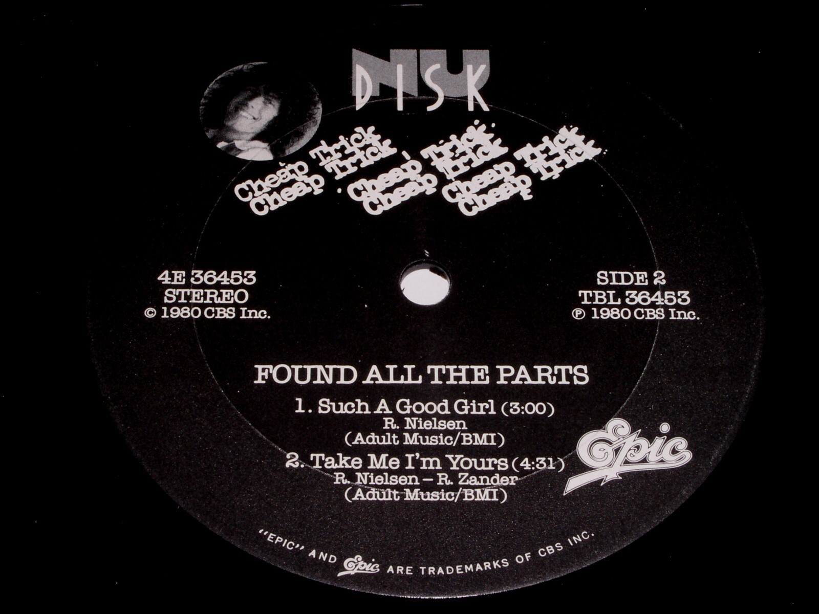 This is a 1980 Extended Play 10" phonograph record album vinyl LP by Cheap Trick entitled, "Found All The Parts". Record label: Epic 36453. Hype sticker as shown. The bonus single is missing. Original shrink wrap tightly on the cover.