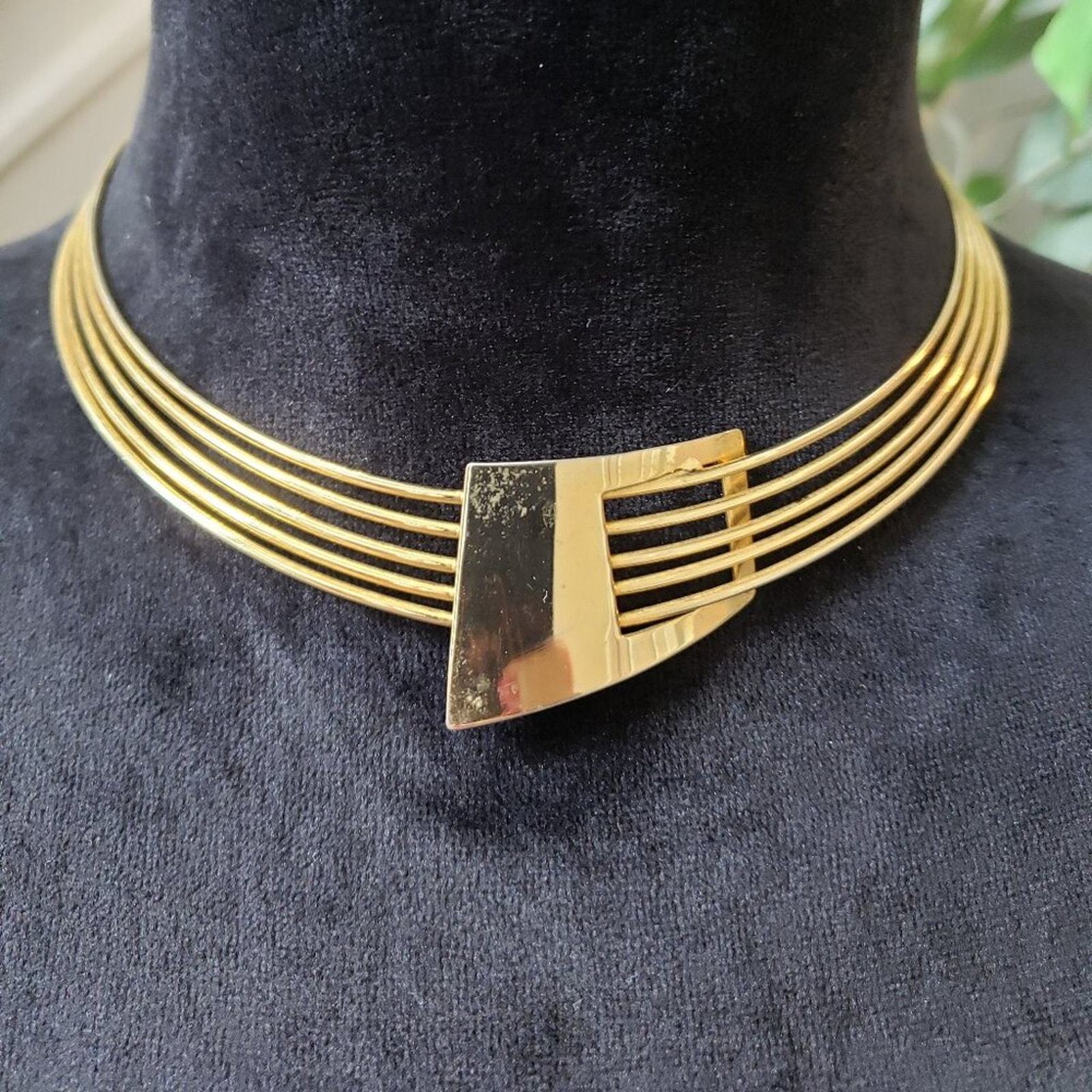 Womens Fashion Gold Tone Statement Tribal Choker Collar Necklace Jewelry.