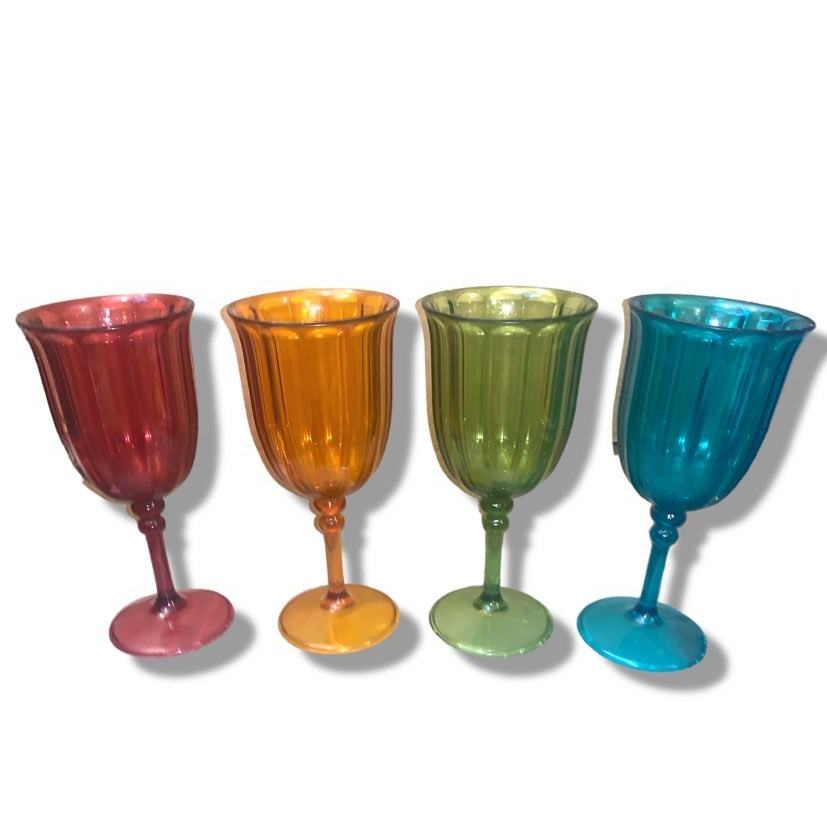 Lot of 4 VINTAGE Multicolored Plastic Wine Glass Chalice Goblets 8" Tall