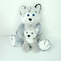 Lot of 2 Husky Puppy Dog And Baby Plush Stuffed Animal Gray White KellyToy 14"