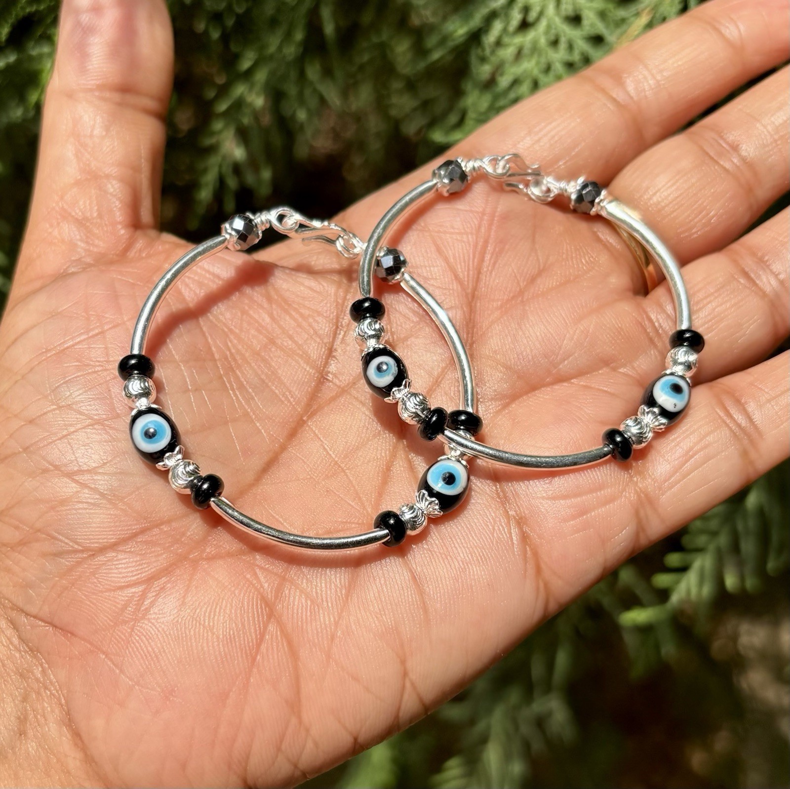 2Pc 999 Silver Evil Eye Protection Bangle Nazariya Kids Infants 10.3 gm Openable