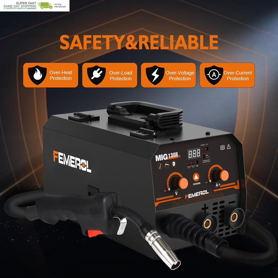 Powerful And Safe Machine:This 130A Welding machine can weld mild up to 4.0mm plate.Big enough to handle 2.2 pounds rolls of wire.Also equipped with overload and overheating system,feel free to use,it?s very safe.