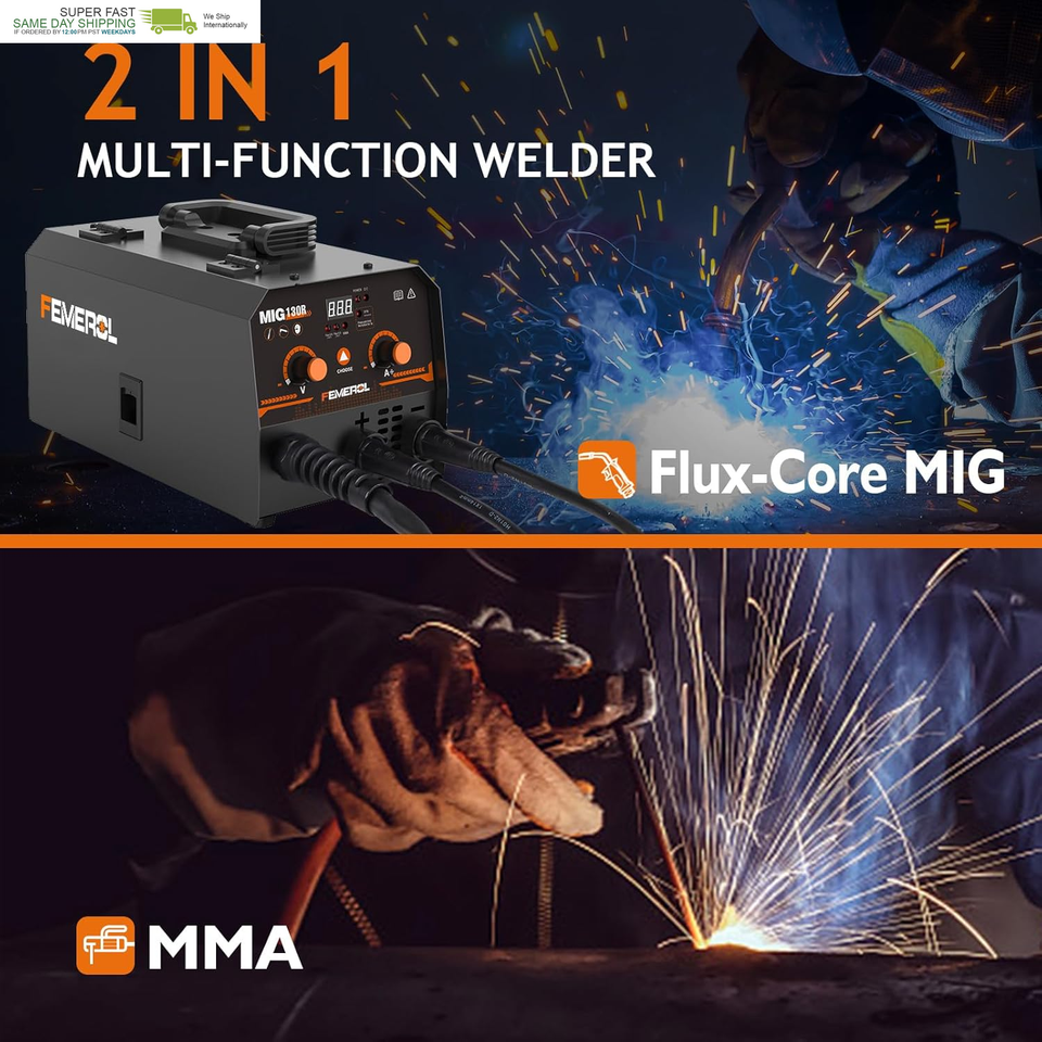MIG Welder,2 in 1 Flux Core/Stick Welder,130Amp 110V Gasless MIG Welding Machine