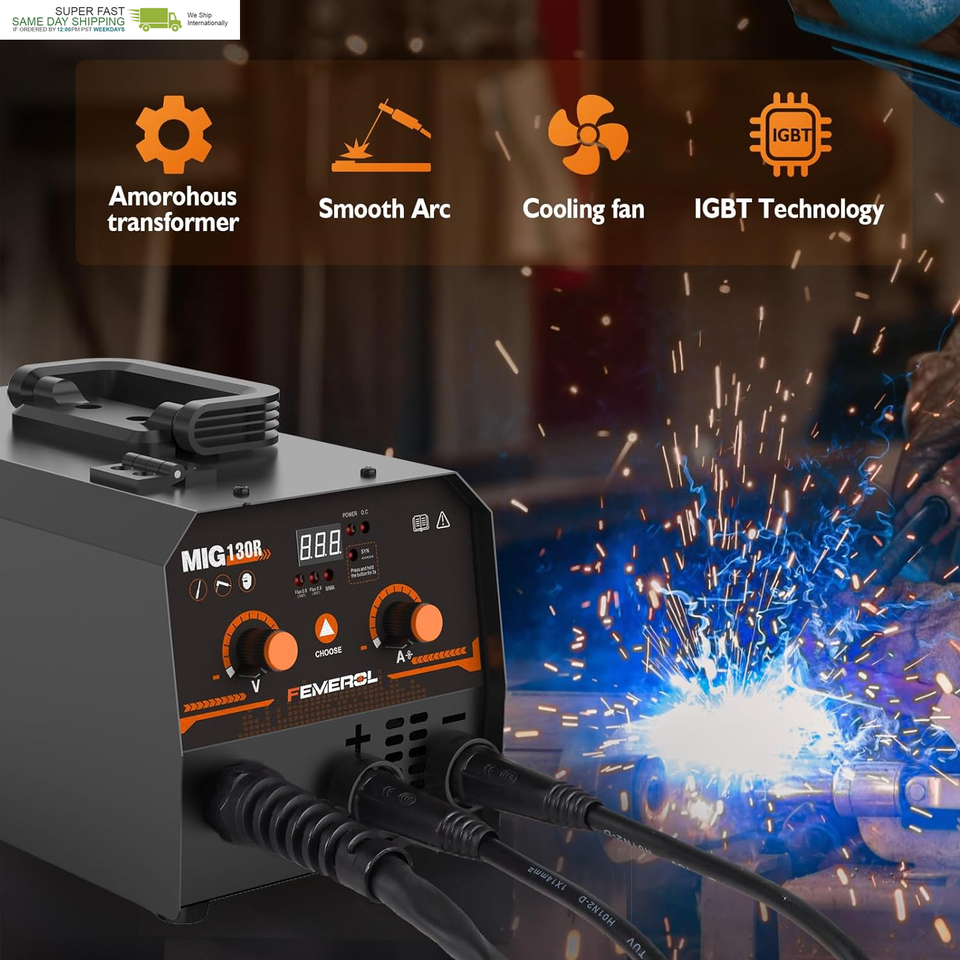 MIG Welder,2 in 1 Flux Core/Stick Welder,130Amp 110V Gasless MIG Welding Machine with Synergy IGBT Inverter Welder Portable Wire Feed Welder