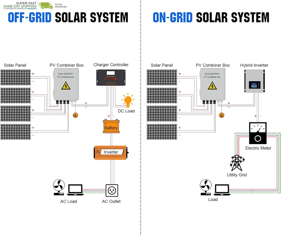 [ Supports single PV connections of less than 10A/250Vdc ] As long as 1.52 times the current of a single PV and the voltage does not exceed 10A/250Vdc, you can connect the combiner box.(E.g. If use the 100W 12V ECO-WORTHY solar panel, it can support solar panel system up to 400W in 12V system, 800W in 24V system, 1600W in 48V system.)