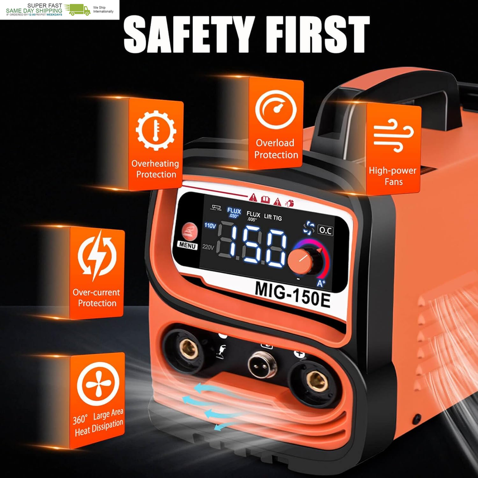The welding machine has 3 modes: flux-core welder, stick welder and lift TIG(Need to buy extra Lift tig torch), and outputs up to 150 amps. The multifunctional welder machine the need to purchase multiple welding machines with different functions, saving space and costs and increasing efficiency.