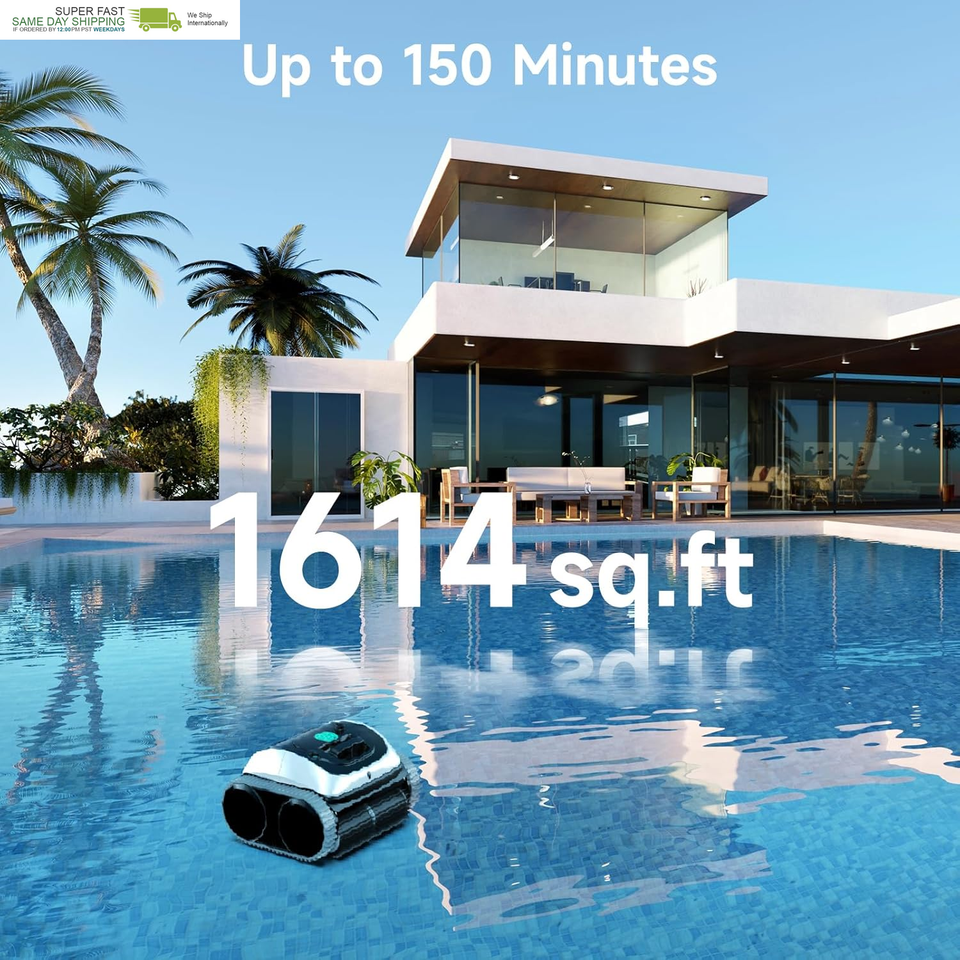 Long Runtime Fast Charging: The upgraded lithium battery supports up to 150 minutes of continuous cleaning on a full charge and recharges in just about 3 hours. Ideal for in-ground pools up to 1,614 sq. ft. and a water depth of up to 9.8 ft, ensuring uninterrupted performance during peak cleaning needs