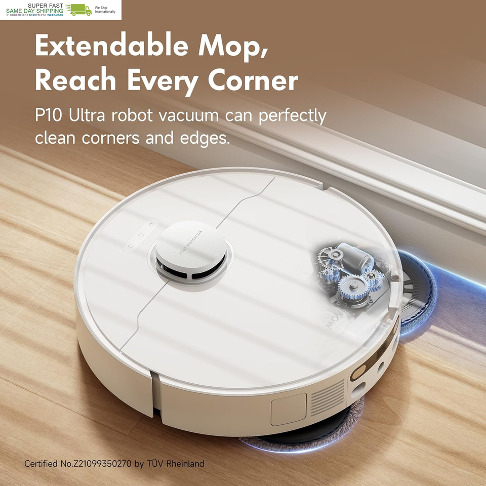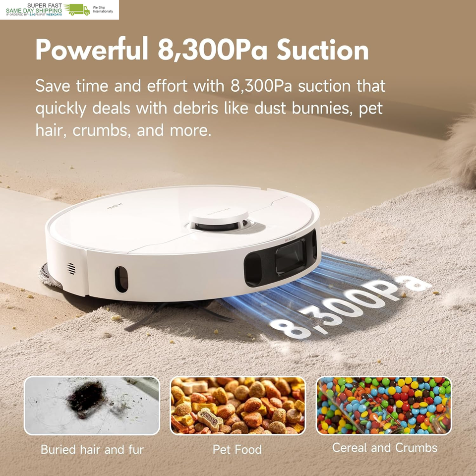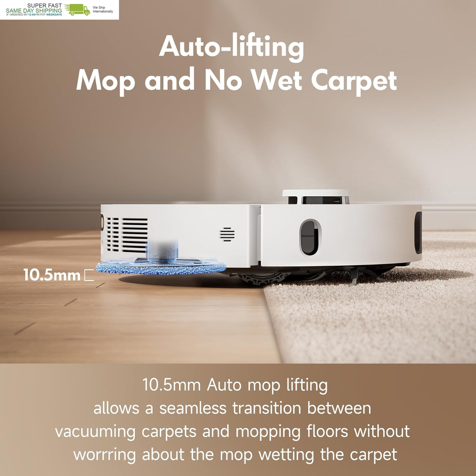8,300Pa Suction 140F Hot Water Auto Mop Washing Drying, Dual Spinning Extenable Clean, 10.5Mm Lifting for Carpet, 360Obstacle Avoidance, App Control