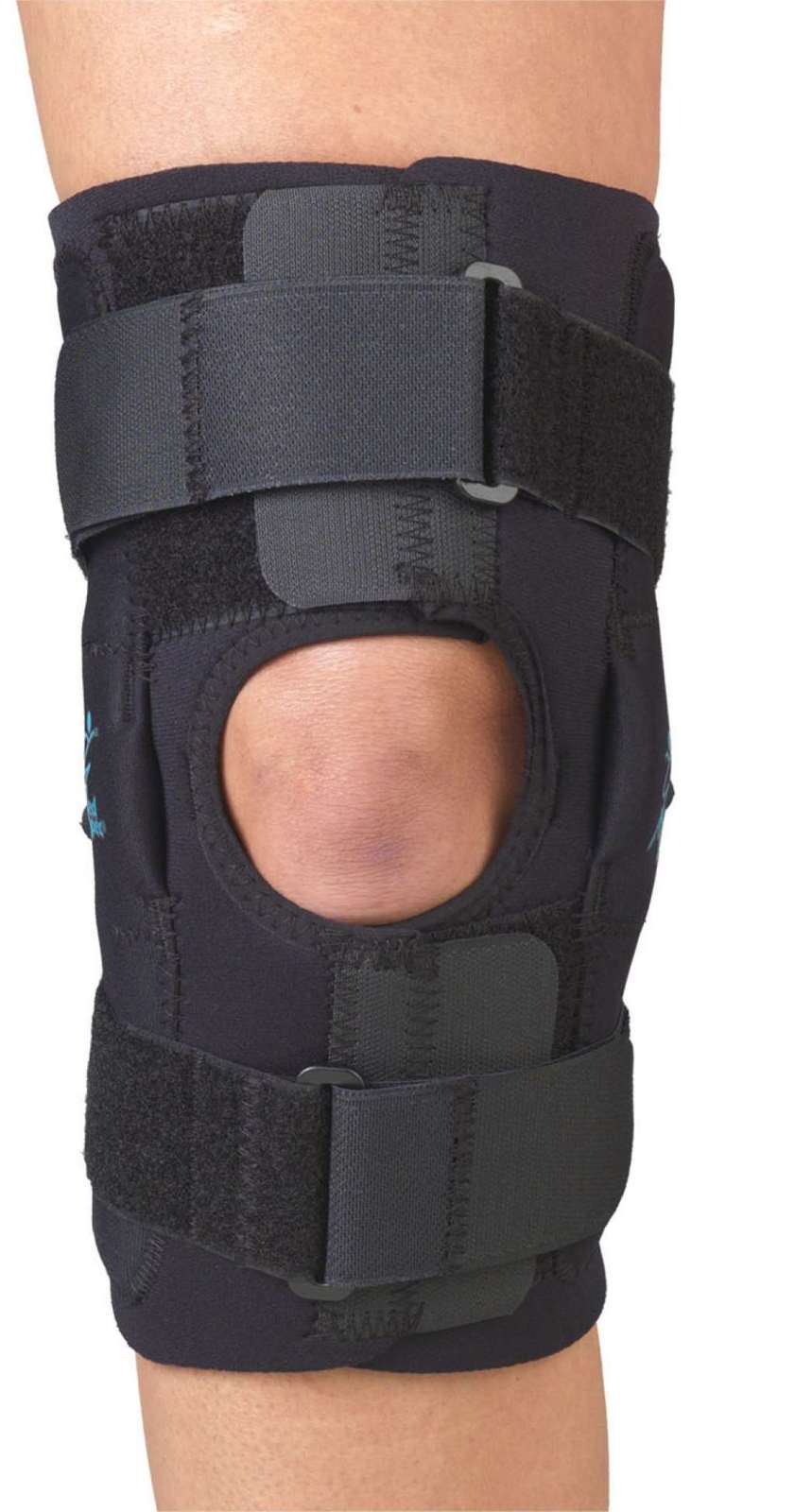 ? Hinged Design: Features metal hinges on the sides to help stabilize the knee and resist hyperextension.