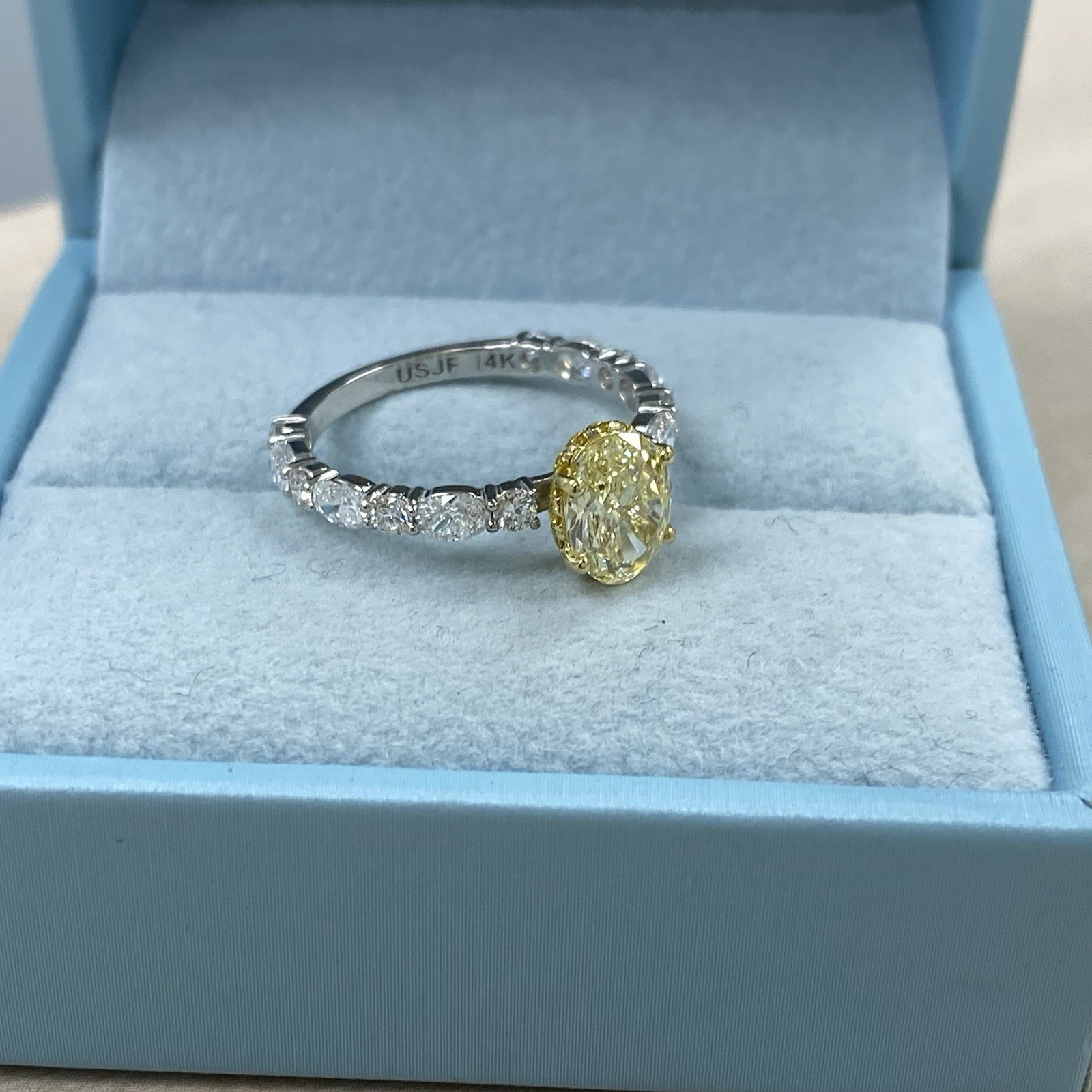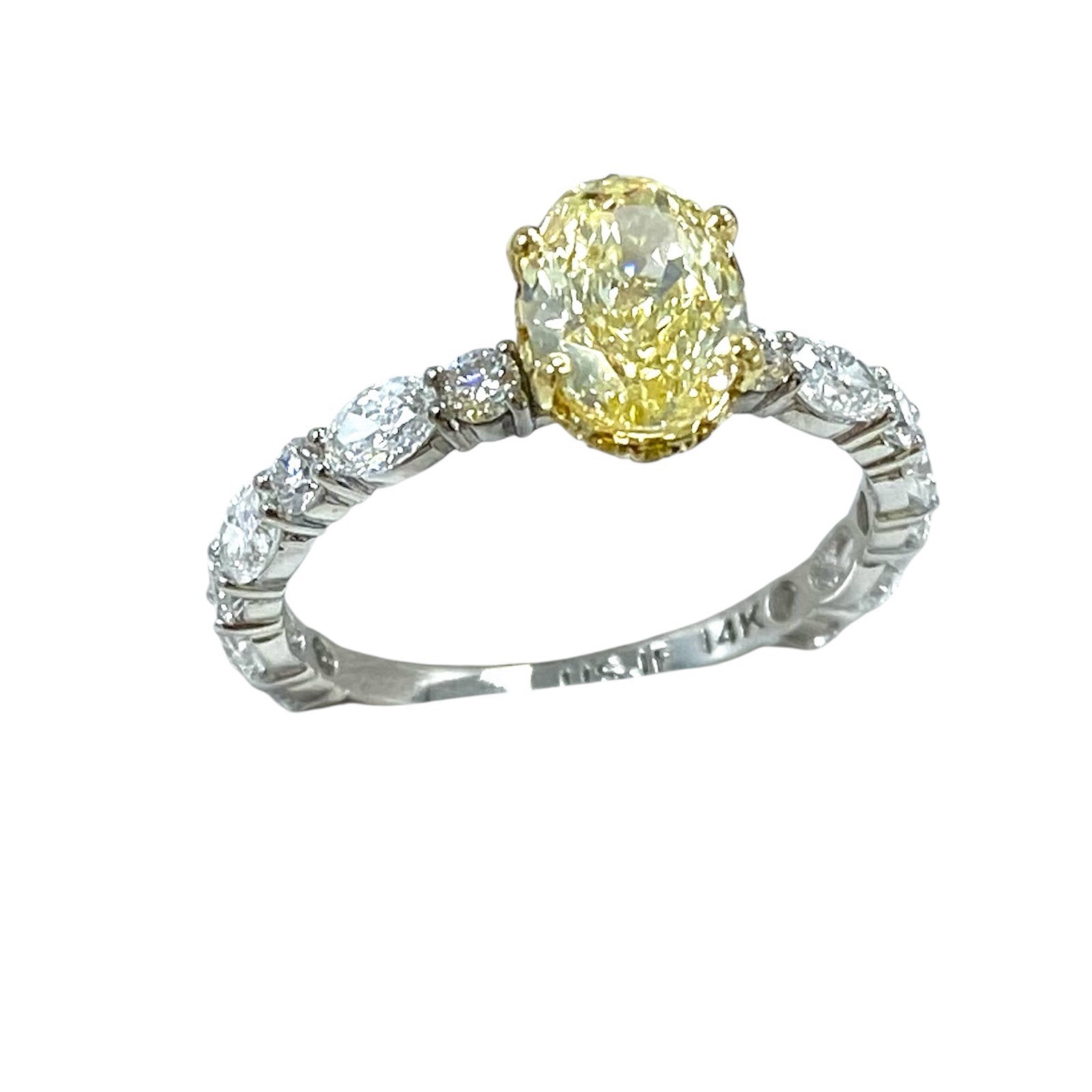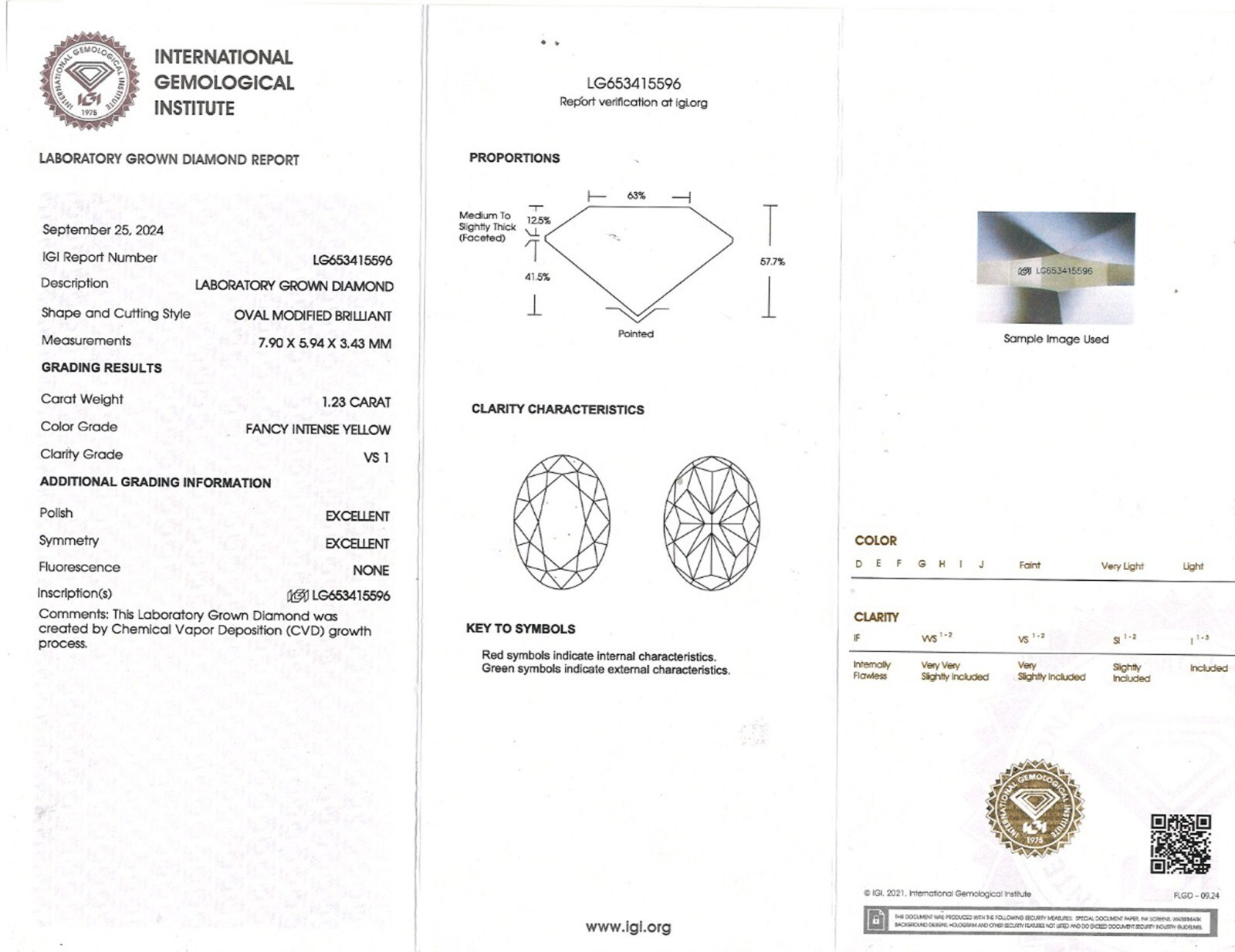 2.40 TCW IGI 1.23Ct Oval Fancy Intense Yellow Lab Grown Diamond Ring 14k Gold
