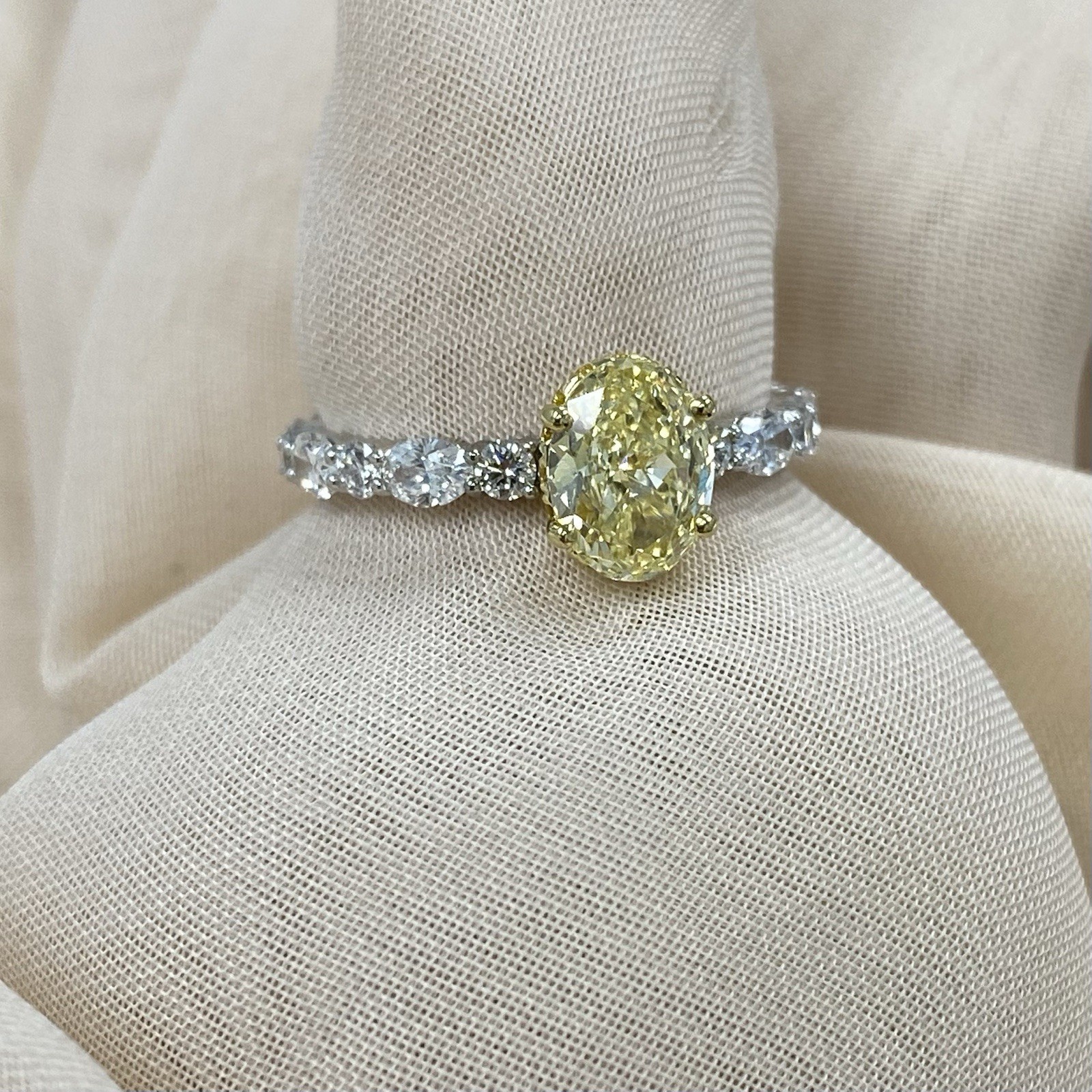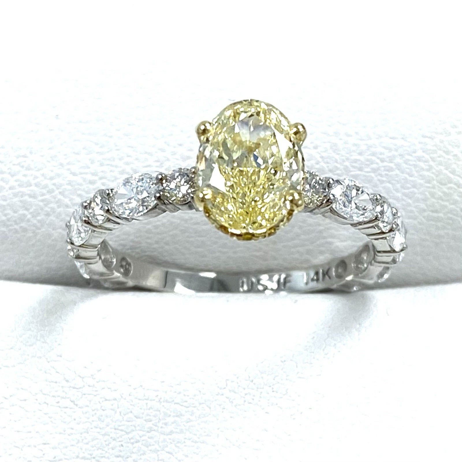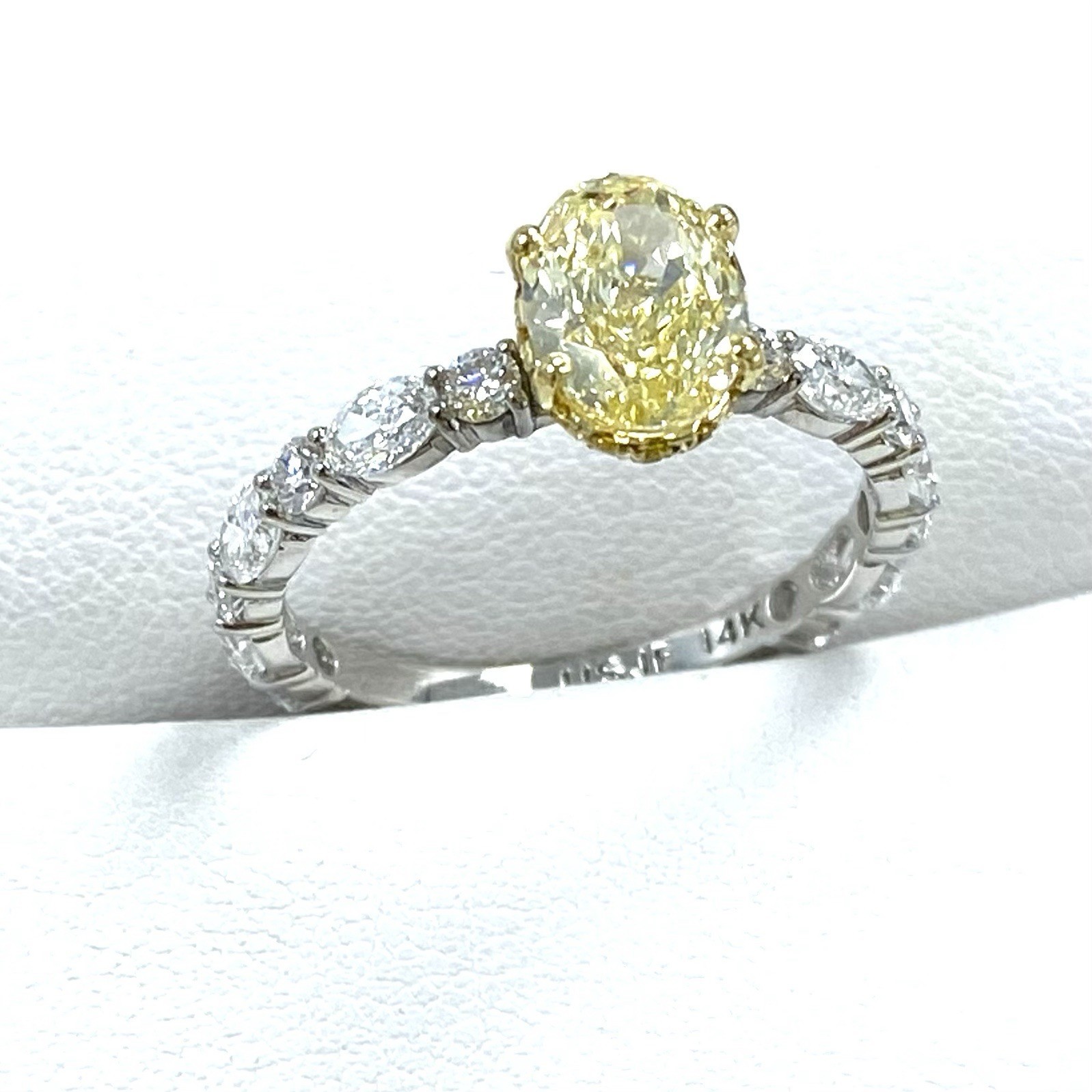 2.40 TCW IGI 1.23Ct Oval Fancy Intense Yellow Lab Grown Diamond Ring 14k Gold