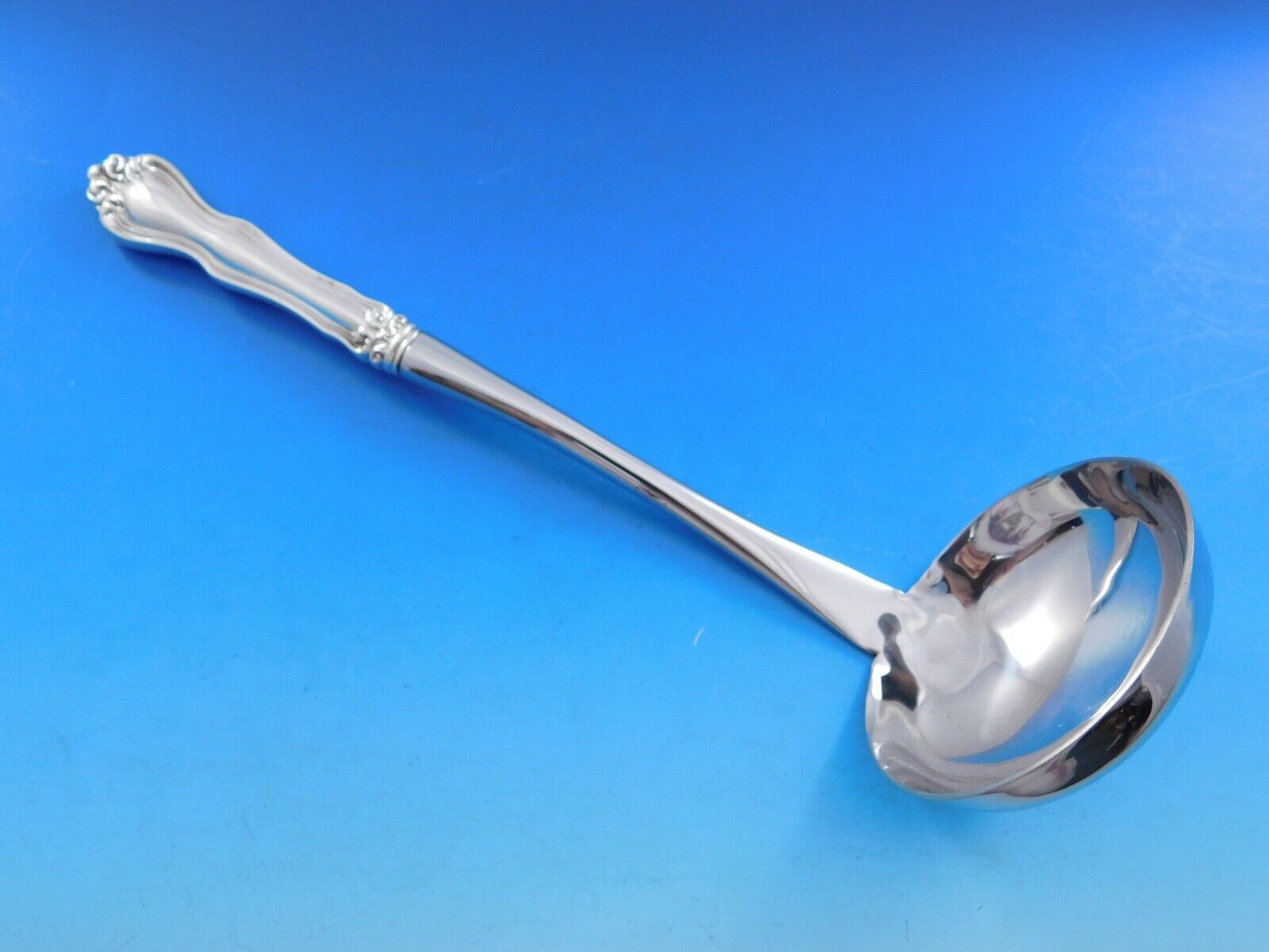 Sterling silver hollow handle with stainless implement SOUP LADLE CUSTOM MADE 10 1/2" in the pattern GEORGE MARTHA BY WESTMORLAND. It is NOT monogrammed and is in excellent condition. THIS PIECE IS LARGE AND IMPRESSIVE!