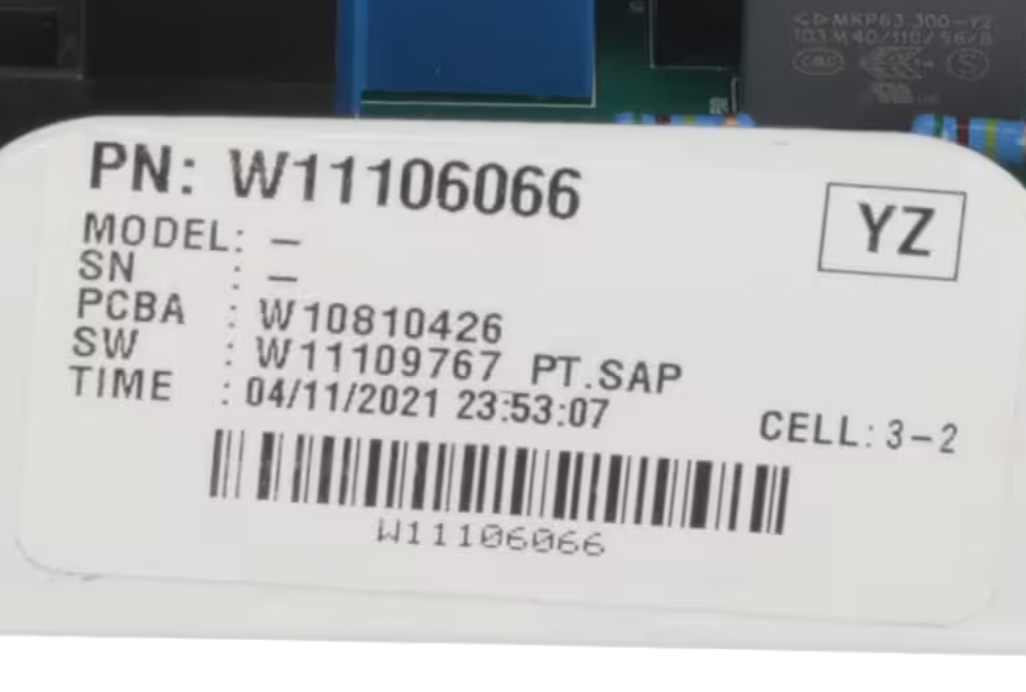 The Whirlpool W11106066 Control Board is the central electronic component responsible for managing the functions and cycles of your dryer. This genuine OEM part ensures that your dryer operates with accurate timing, temperature regulation, and cycle selection. If your dryer is experiencing irregular behavior, unresponsive controls, or fails to start, replacing the control board may restore optimal performance.