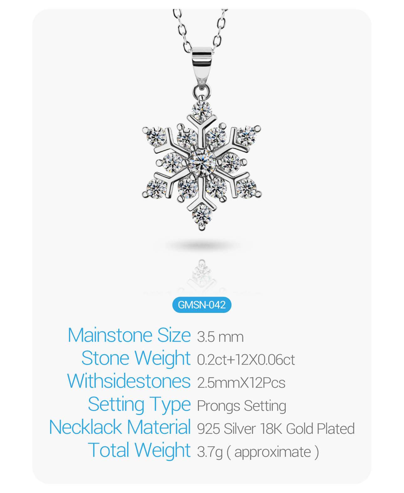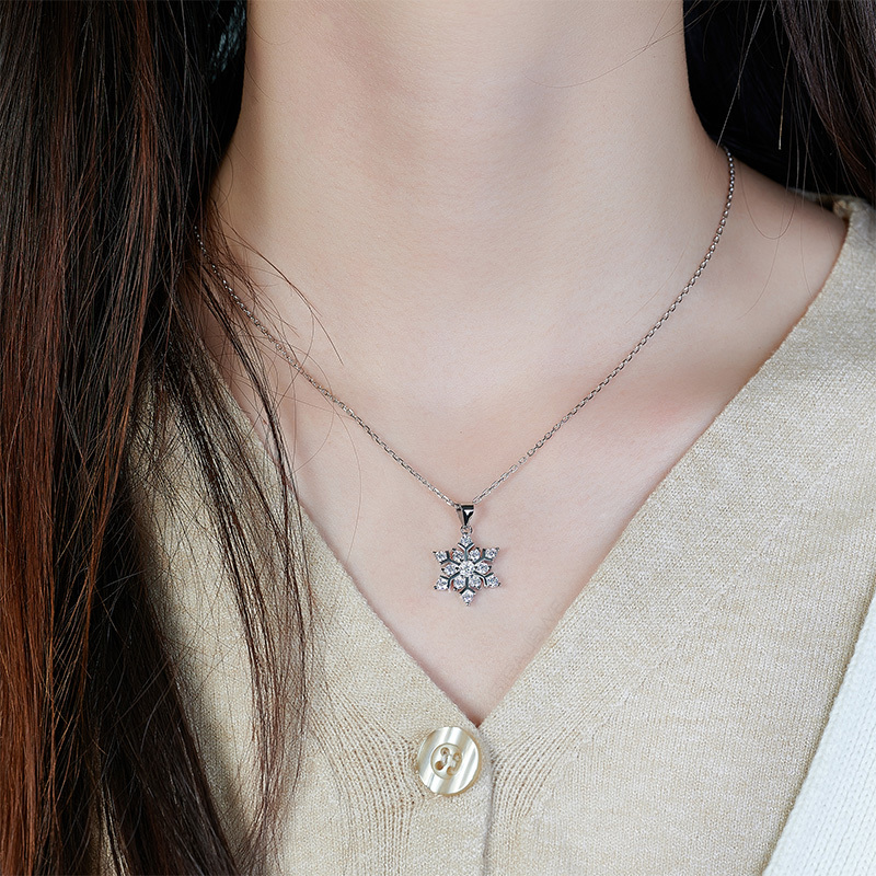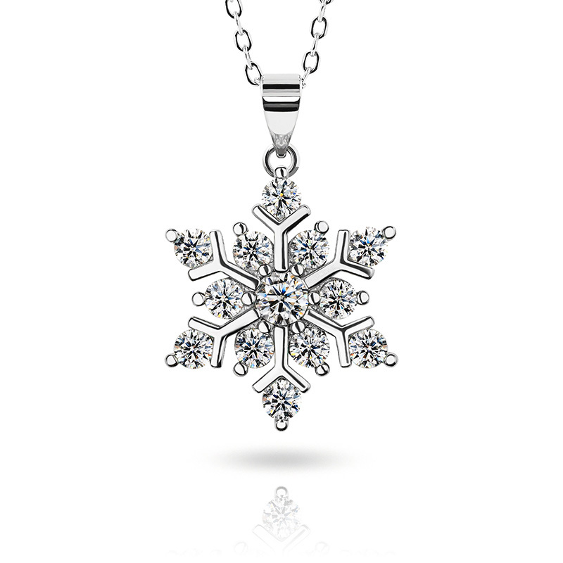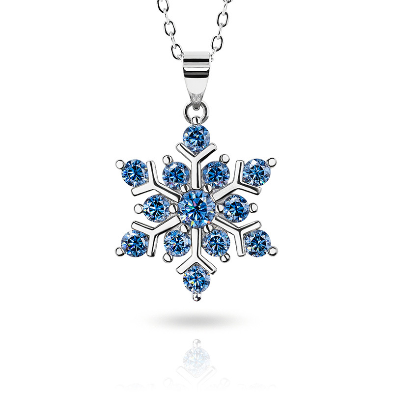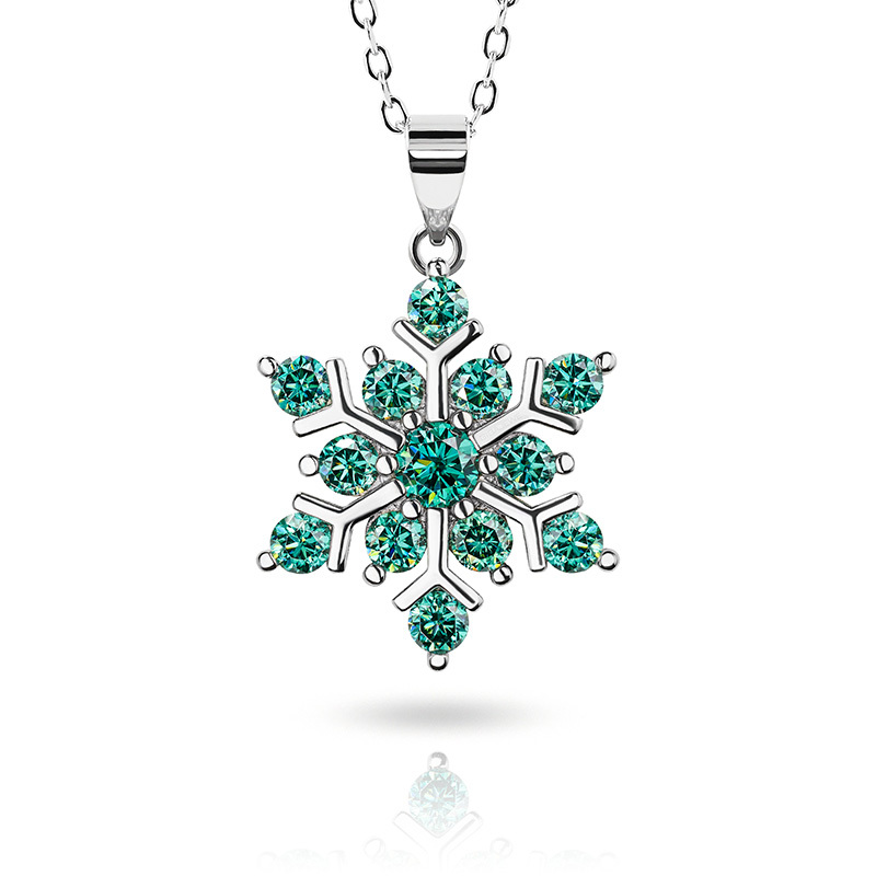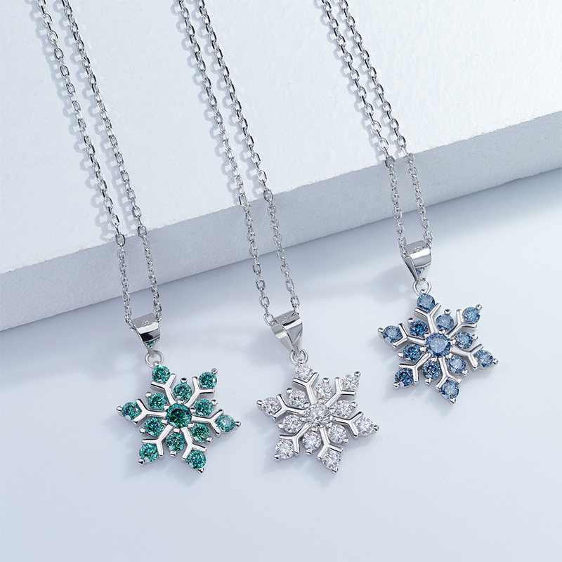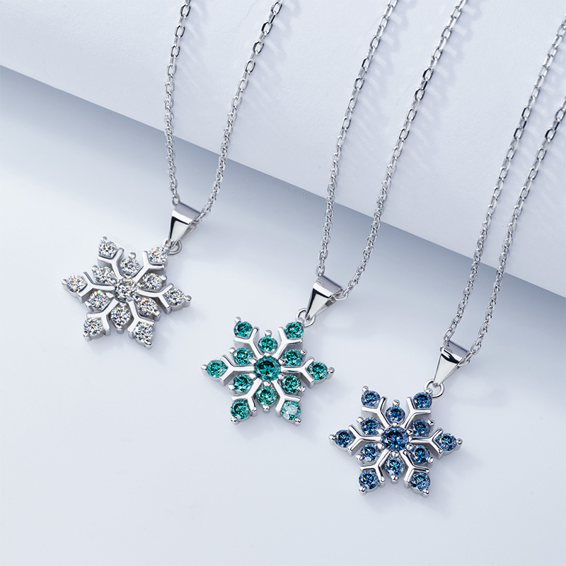Product Name: GIGAJEWE Total 1.0ct 925 Sterling Silver Snowflake Necklace 3mm Round Cut Blue white Green Color Moissanite Necklace , Silver Necklace