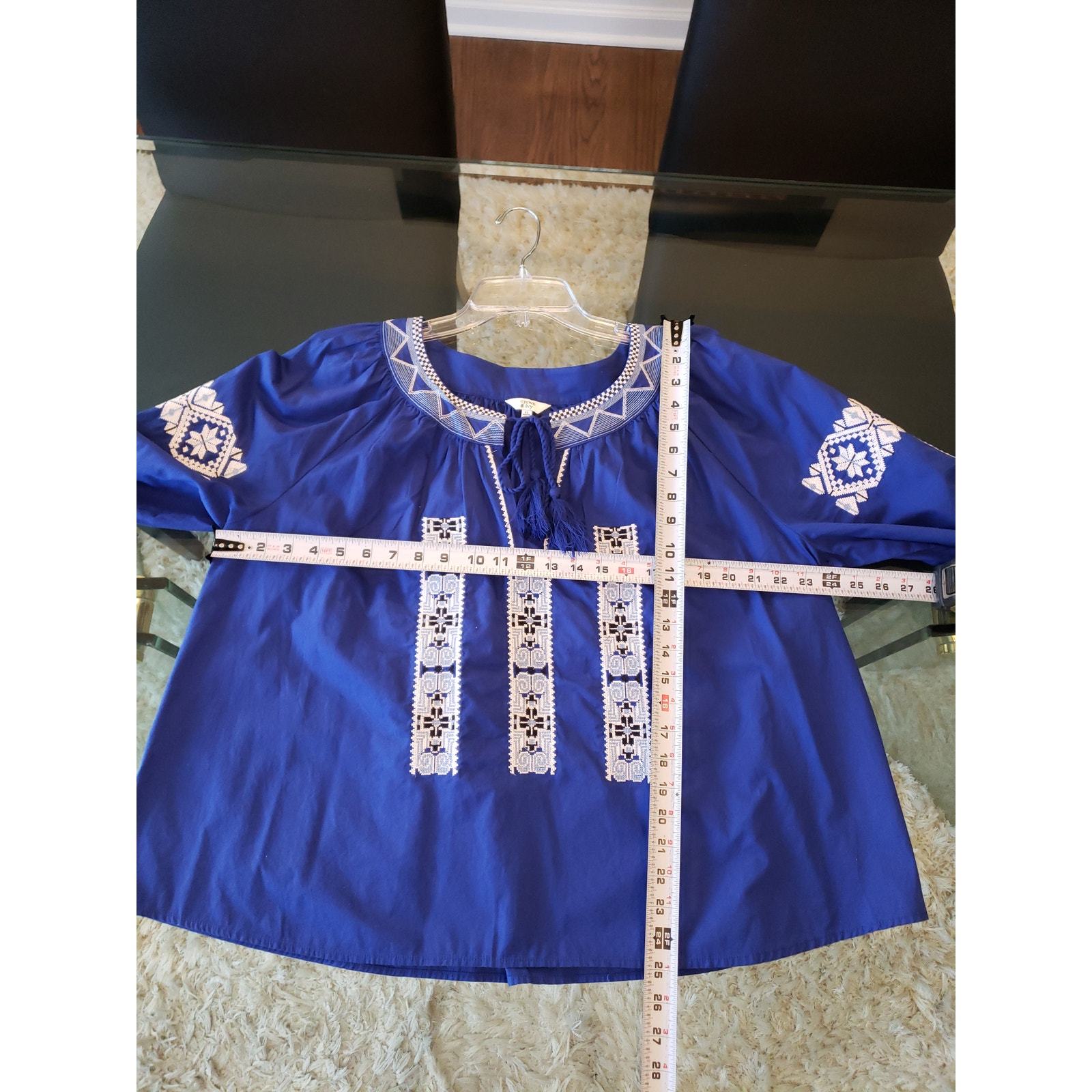 Women's Crown & Ivy Blue Embroidered Boho Top XL Long Sleeves Outdoor