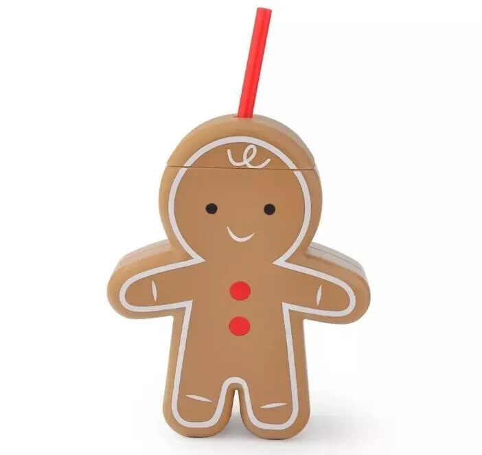 Target Bullseye's Christmas Gingerbread Man Plastic Sipper Tumbler Cup 12 oz.