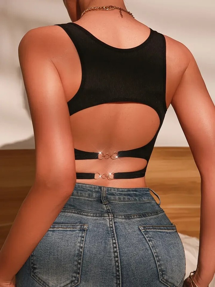 Women's Elegant Backless Cropped Tank Top with Waist Chain.