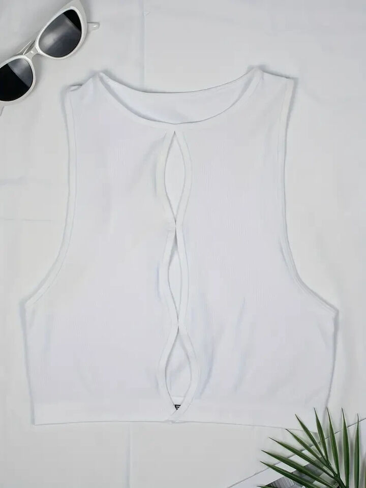 This Simple Solid Hollow Out Round Neck Tank Top is an all-match crop vest top that is perfect for women who want to look stylish and trendy.