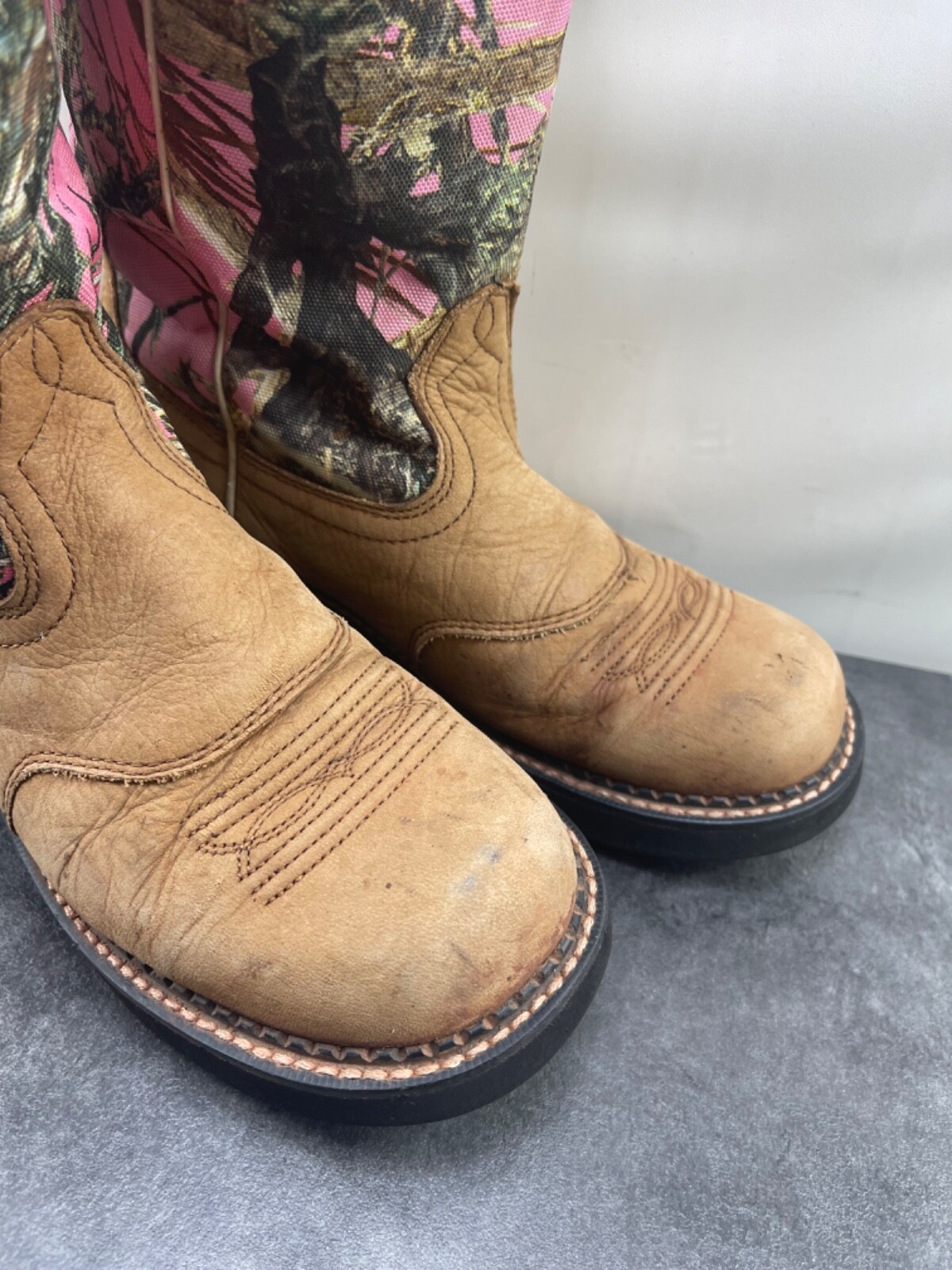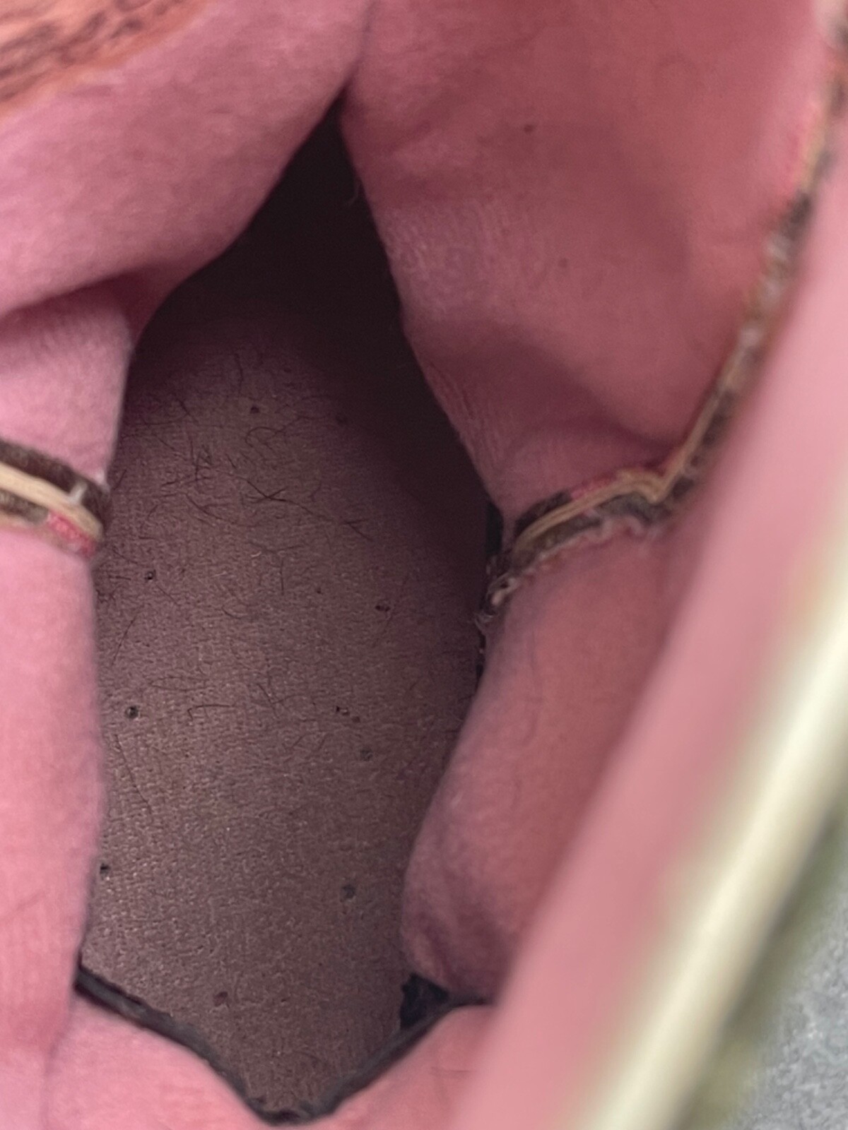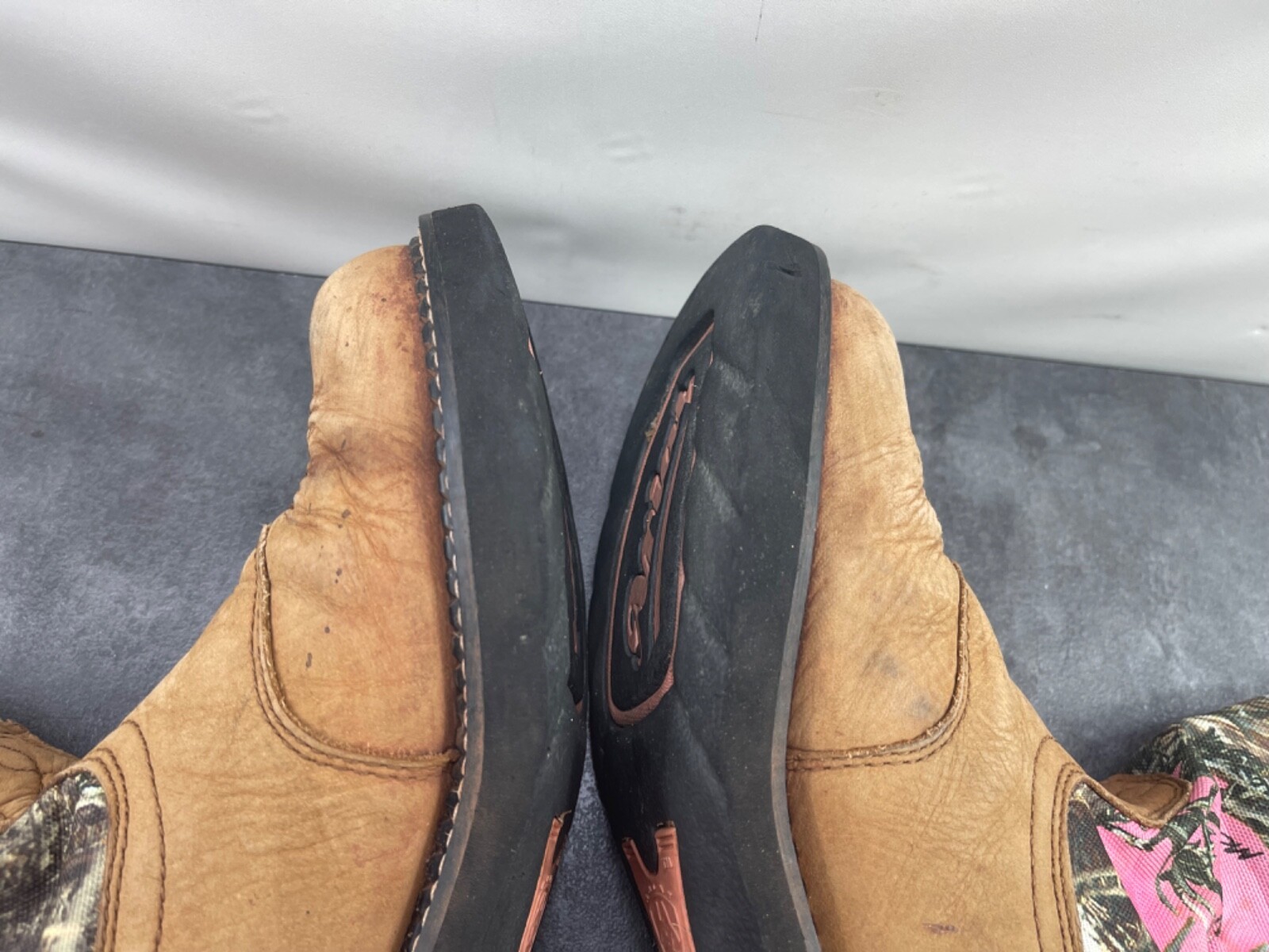 Note : Being a used item, there are signs of prior use on it like a few body abrasions, a little fading, staining, heel wear, some insole/inside body staining/wear and an area of gum on the bottom sole but overall, they are still in really great condition.