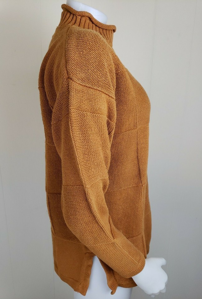 Vintage YarnWorks Sweater Womens S Mustard Brown Ramie Cotton Mock Neck HongKong