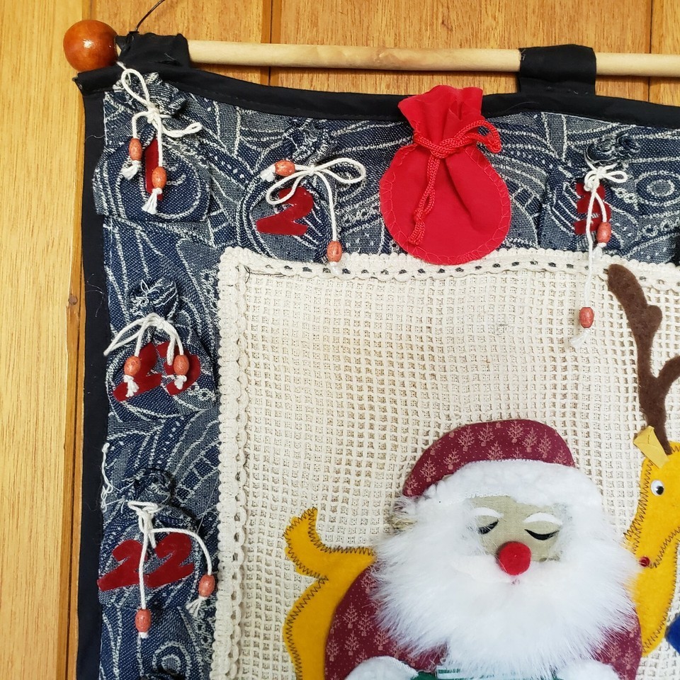 Vtg Handmade Felt Advent Calendar Christmas Applique Needlework Santa Reindeer