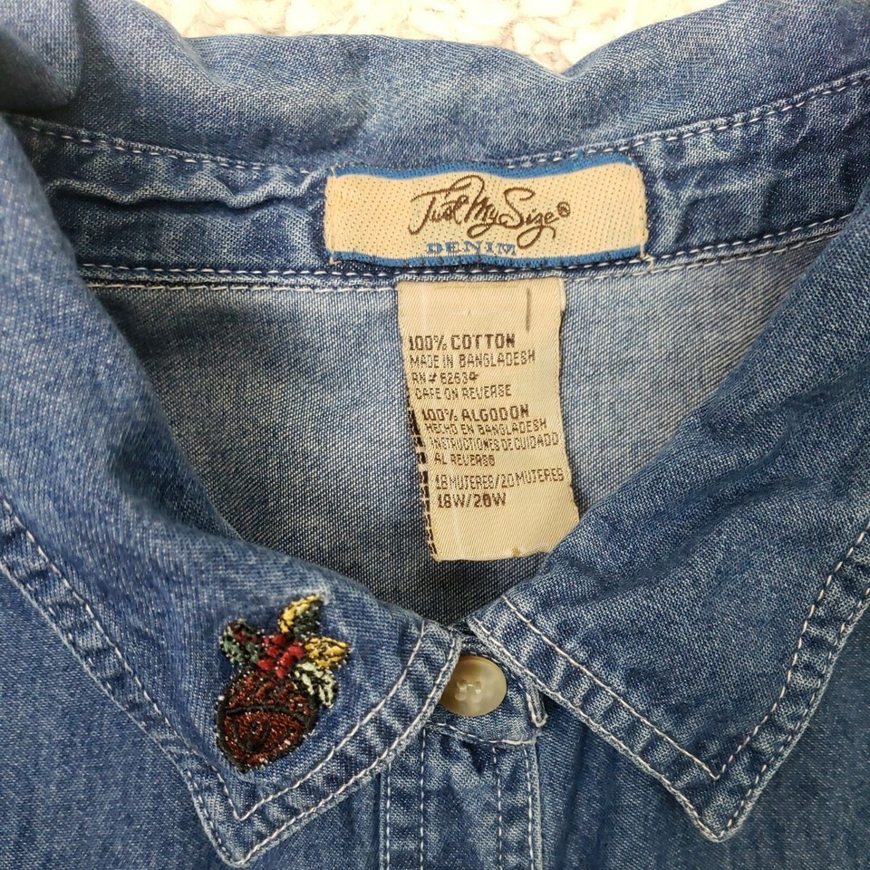 Just My Size Denim Top Womens Size 18W 20W Fall Embroidered Blue Cotton Shirt