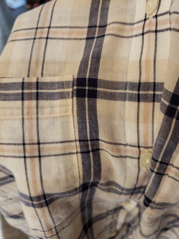 Long Sleeve Pebble Plaid Blue, Pale Pink and Tan