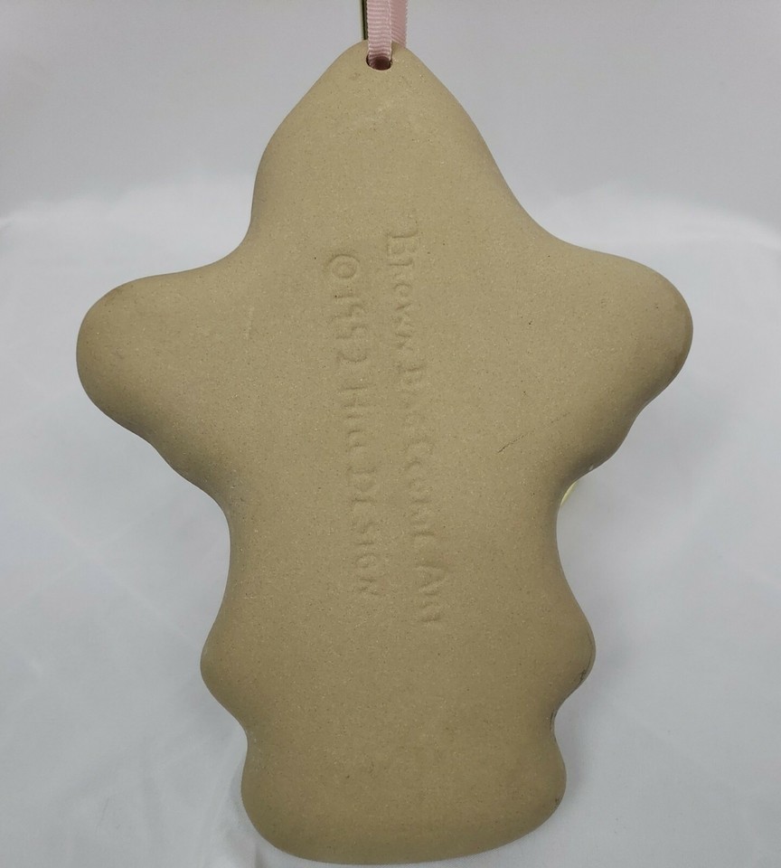 Brown Bag Cookie Art Mold Santa Claus Stars Giant Stamp Gift Ceramic Vtg 1992