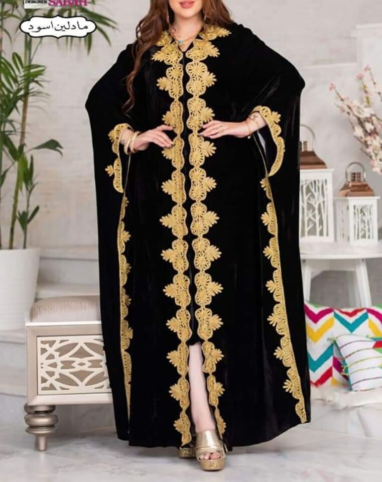 Caftan Georgette Wedding Moroccan Dubai Gown Islamic Royal Kaftan Velvet Abaya\AS