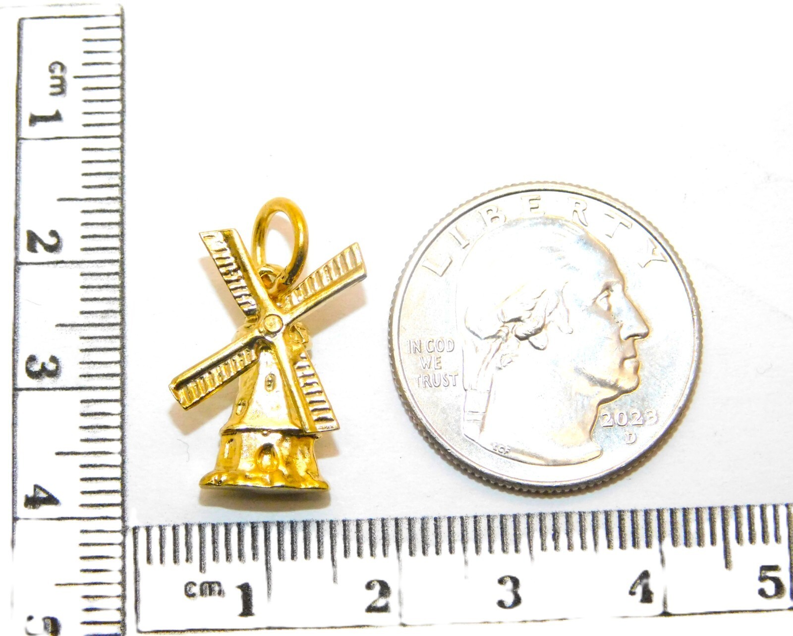 Authenticity Guarantee 14K Windmill Yellow Gold Pendant Charm