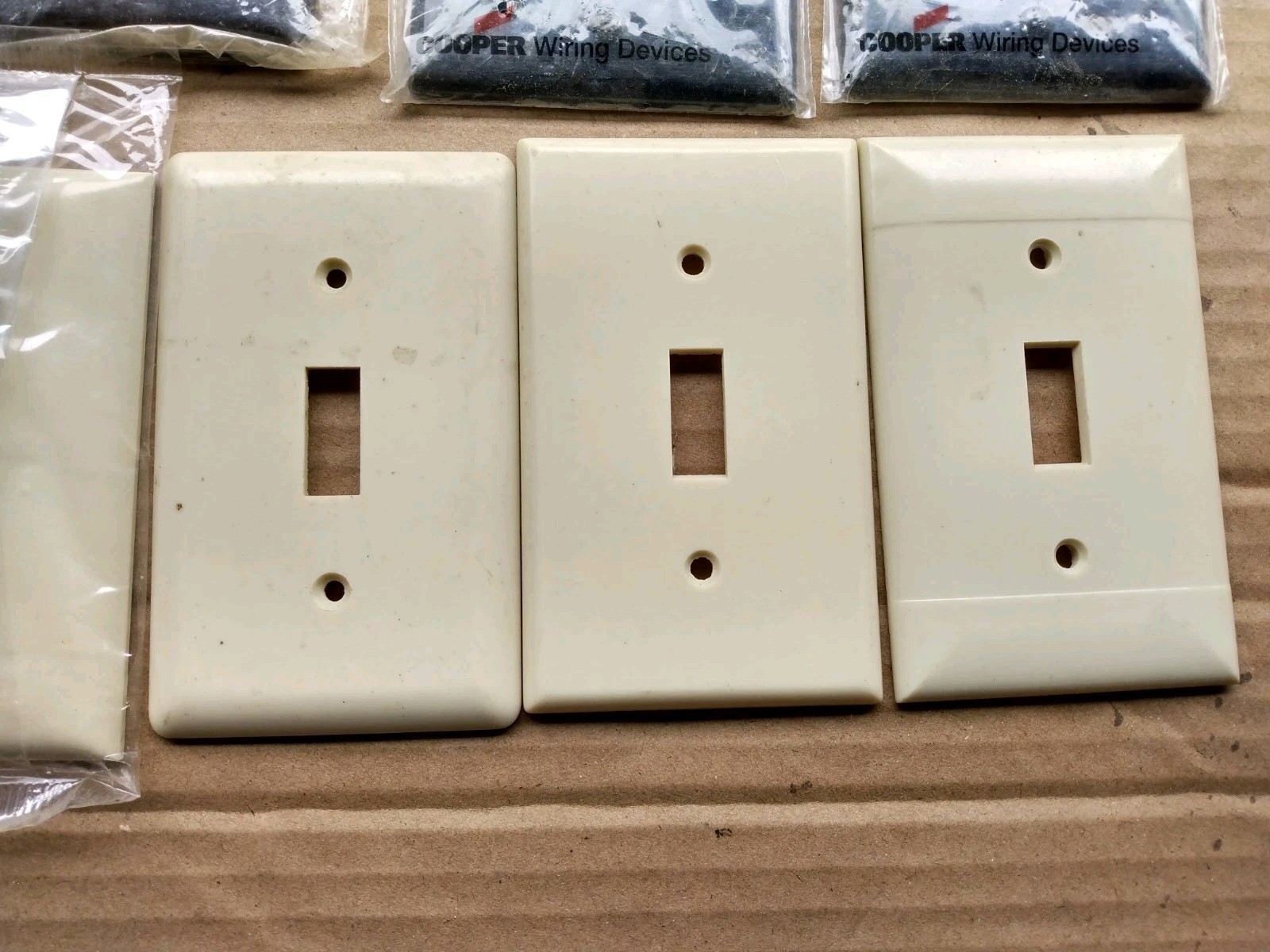LOT OF 13 OLDER PLASTIC LIGHT AND OUTLET SWITCH COVERS. 3 BLACK AND THE REST OFF-WHITE/IVORY COLOR. 3 VERY GOOD USED AND 10 ARE NEW STILL IN ORIGINAL PACKAGING WITH SCREWS. SHIPS USPS WITHIN A BUSINESS DAY OF PAYMENT.