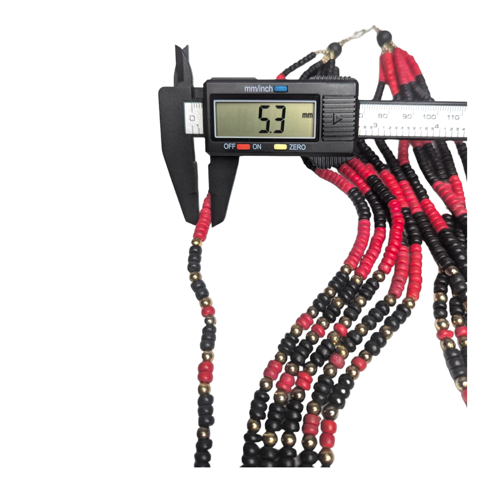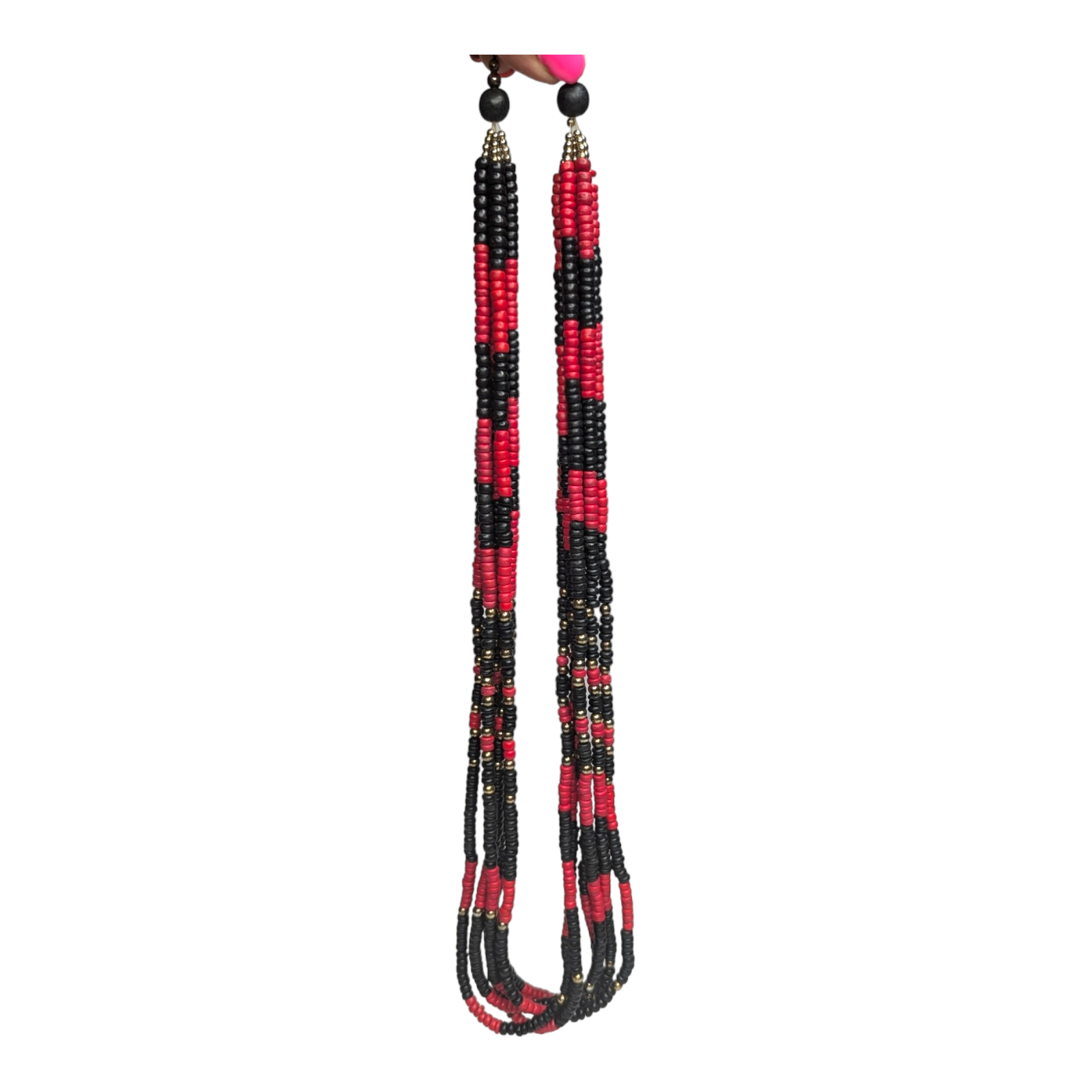 Southwestern Boho Red Black Color Block Seed Bead Multi Strand Long Necklace Vtg