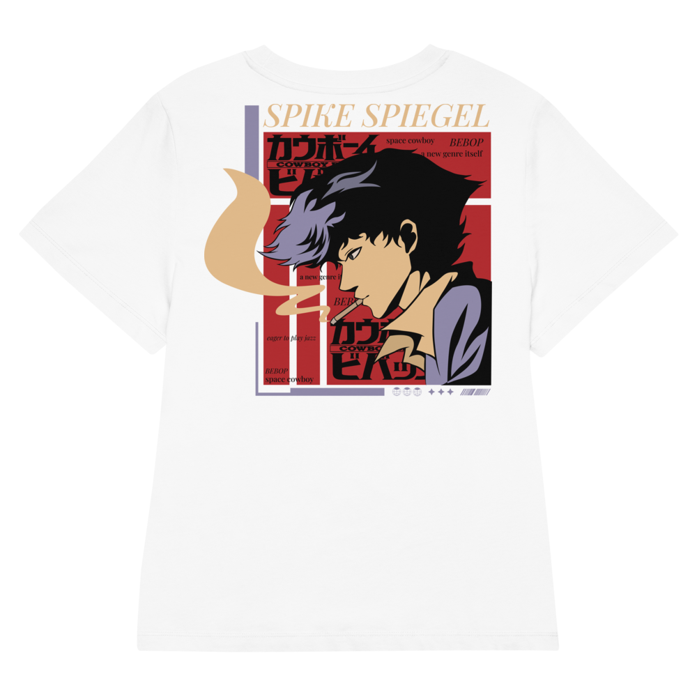 Women’s Organic Ribbed Neck T-Shirt – Spike Spiegel Back Print (White)