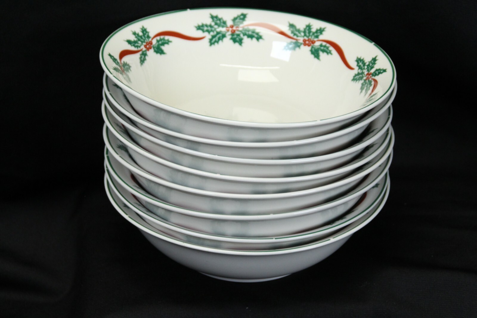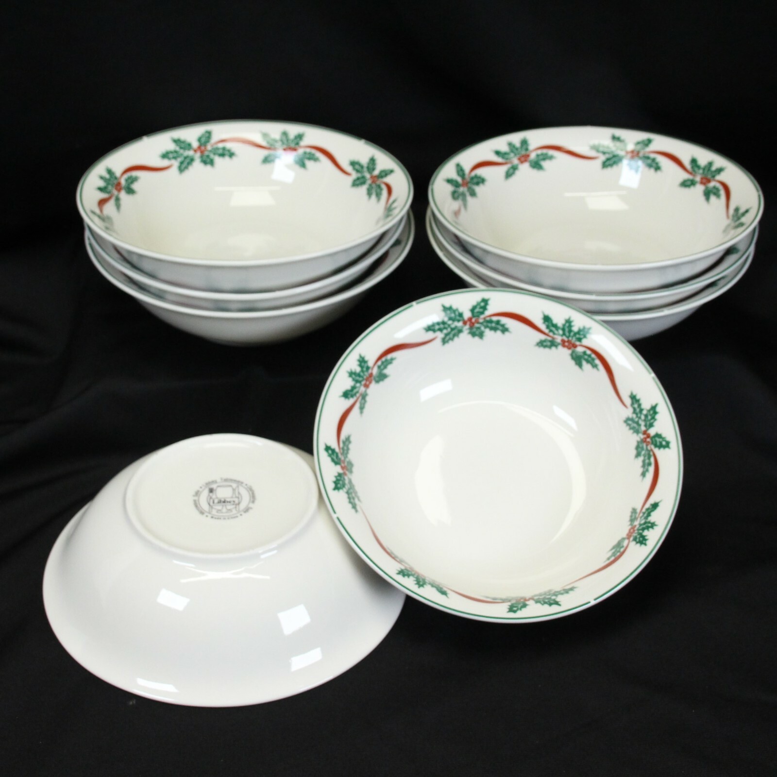 Libbey Ribbon and Holly Soup Bowls 7-1/4" Lot of 8 Christmas Xmas