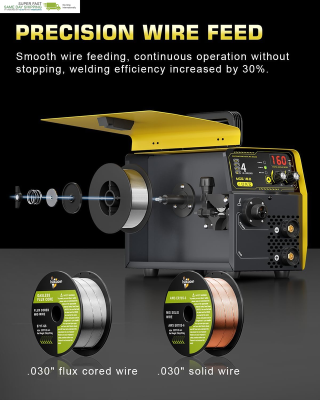 ?INTELLIGENT SYNCHRONIZED CONTROL?: haxiaoer Gas MIG Weder advanced IGBT inverter + MCU chip auto-synchronization technology automatically adjusts the voltage and wire feed speed (20-160A) based on the wire diameter (0.6-1.0 mm), eliminating guesswork for beginners and manual control for professionals. Also compatible with the 6013/7018 welding rods, features such as Hot Start (for easy arc spotting), Arc Force (for stable, long-distance welding), and Anti-Stick (to prevent electrode melting) ensure clean, professional welding results.