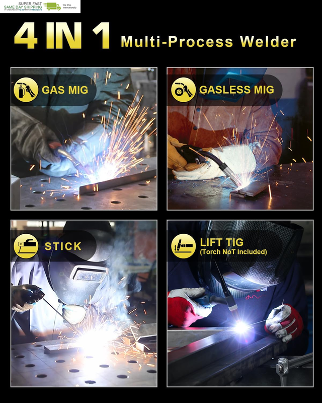 ?MULTIPLE MATERIAL COMPATIBILITY?: haxiaoer mig welder a wide range of metals including carbon, stainless, and alloy steel, and is adjustable for thin (0.6 mm) to thick (8 mm) plates. The gasless flux cored mode works perfectly in windy outdoor conditions, while the elevated tig welding mode delivers precise, spatter-free welds on fine surfaces. Perfect for DIY enthusiasts, machinists and professionals who need one machine for a variety of projects.